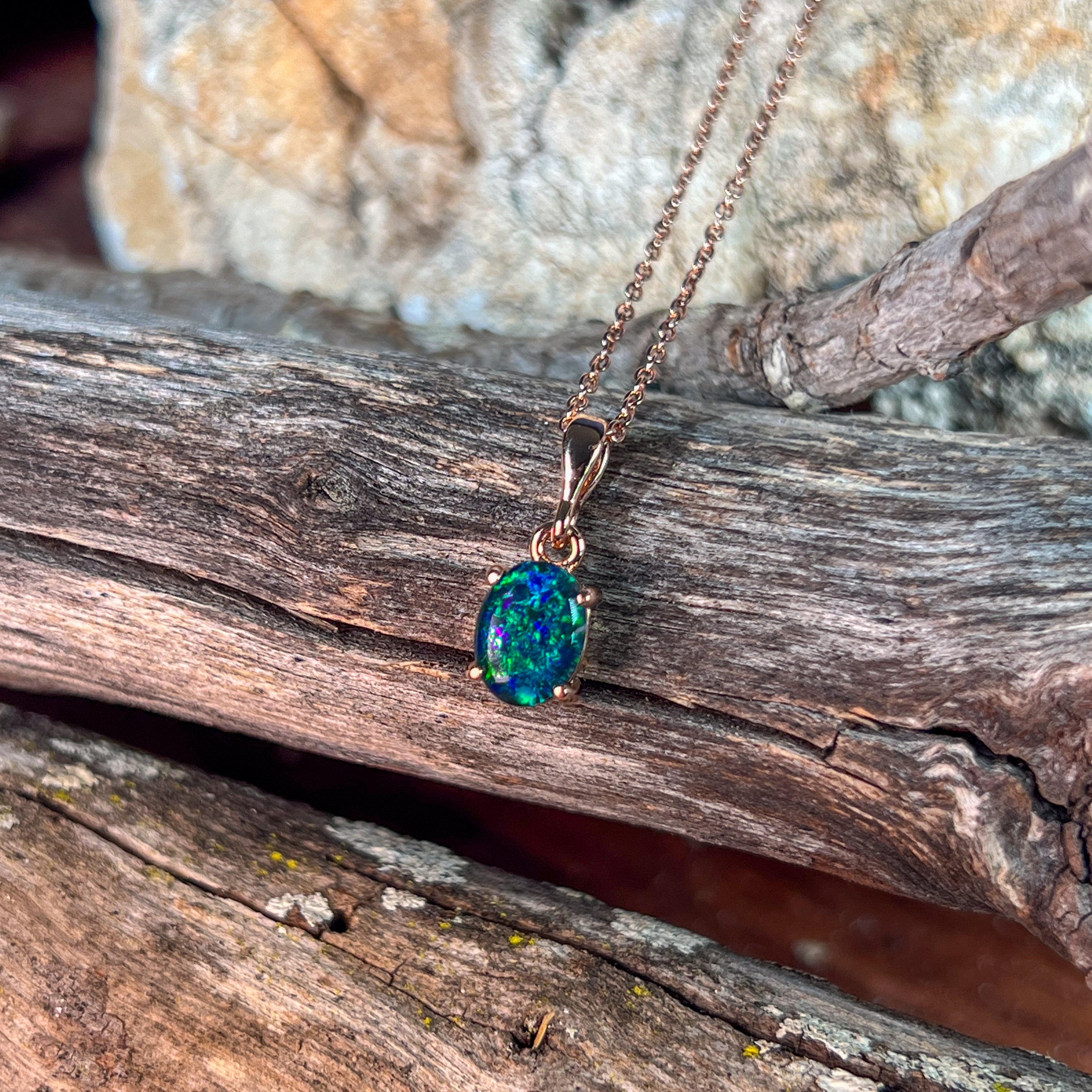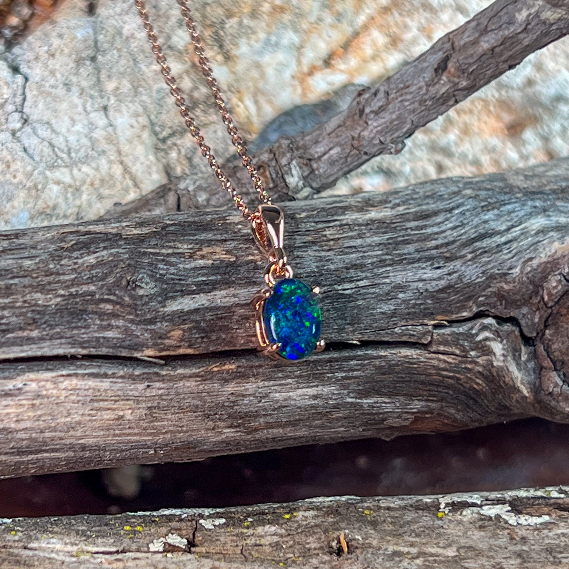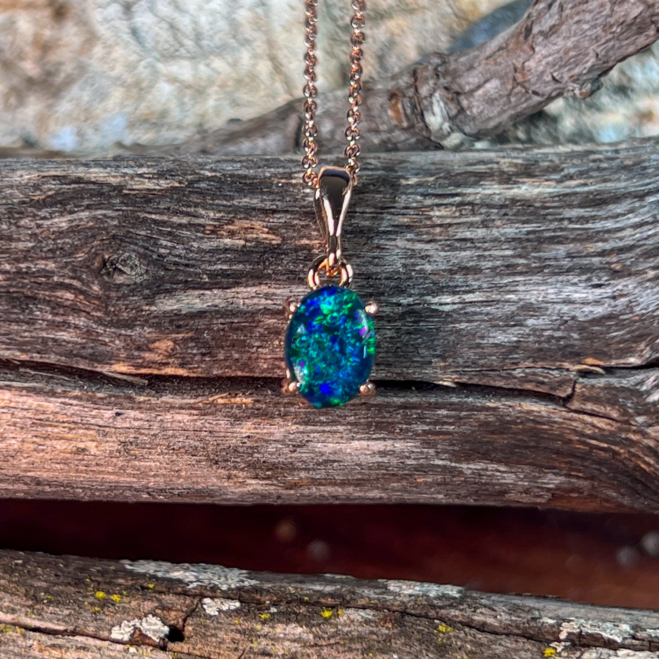 Rose gold plated silver classic 4 claw set 8x6mm Opal triplet pendant