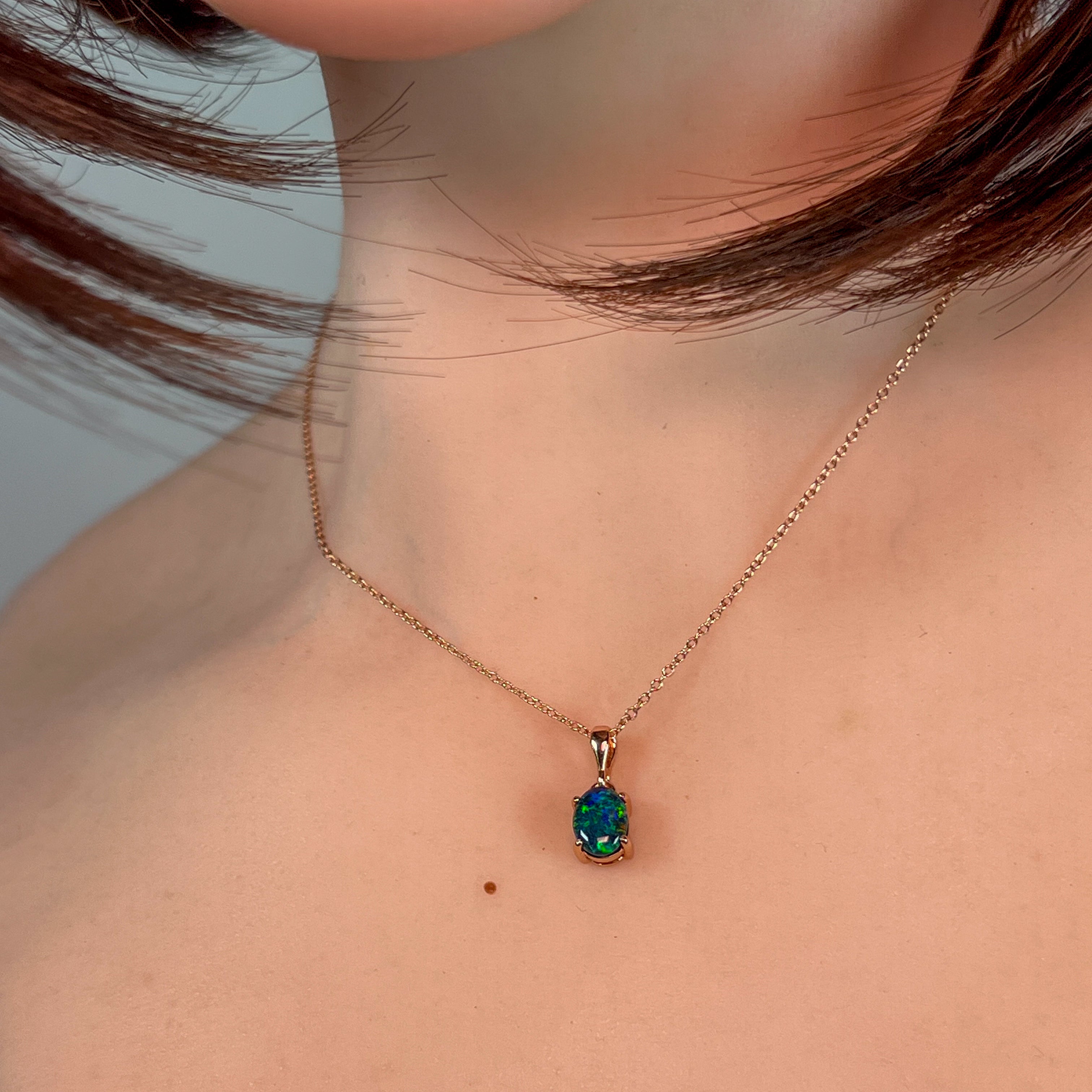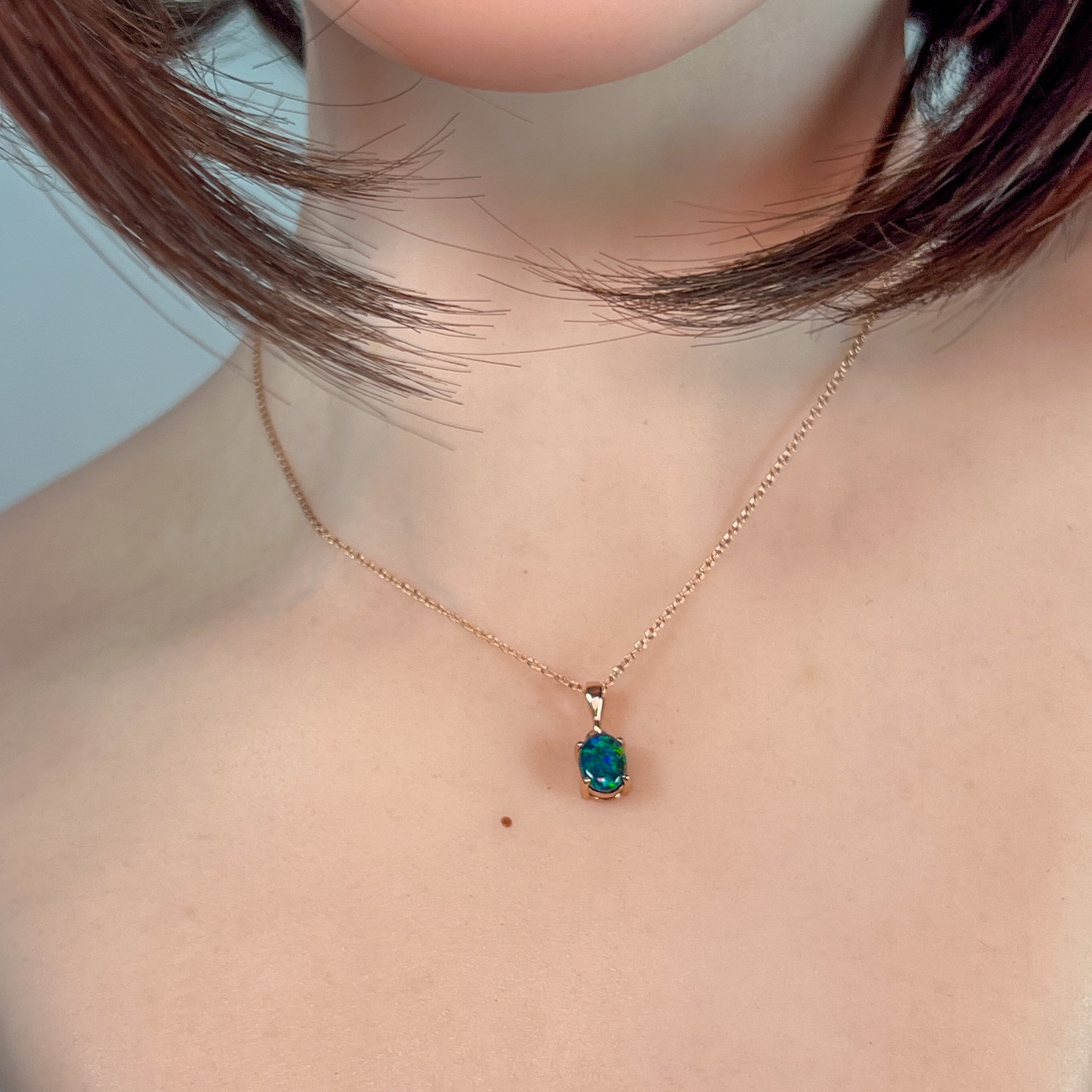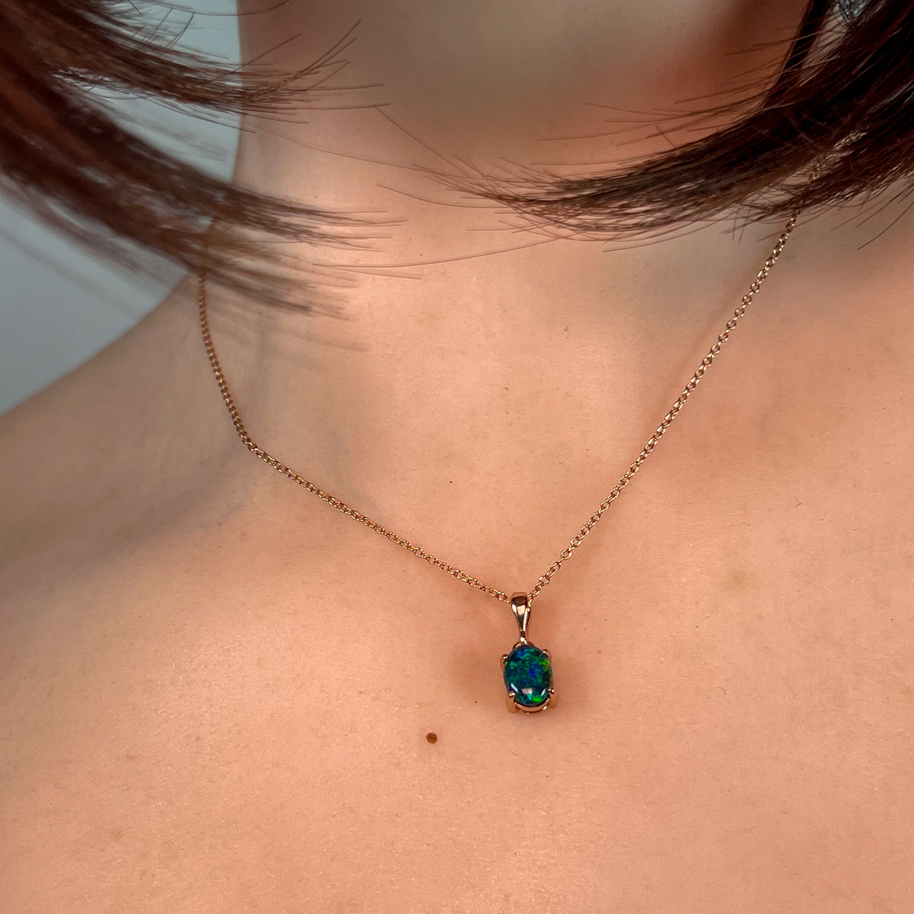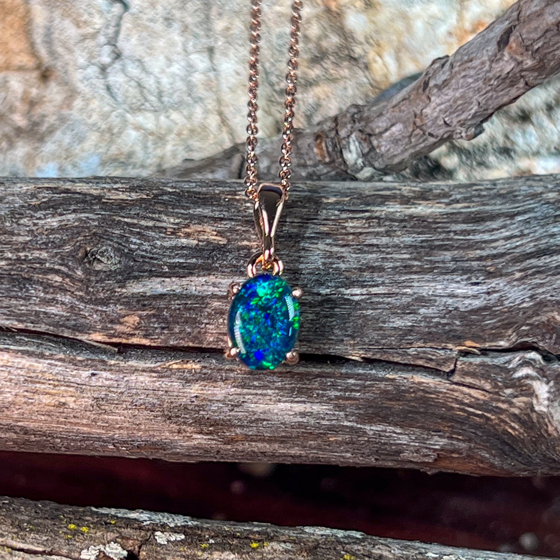 Rose gold plated silver classic 4 claw set 8x6mm Opal triplet pendant