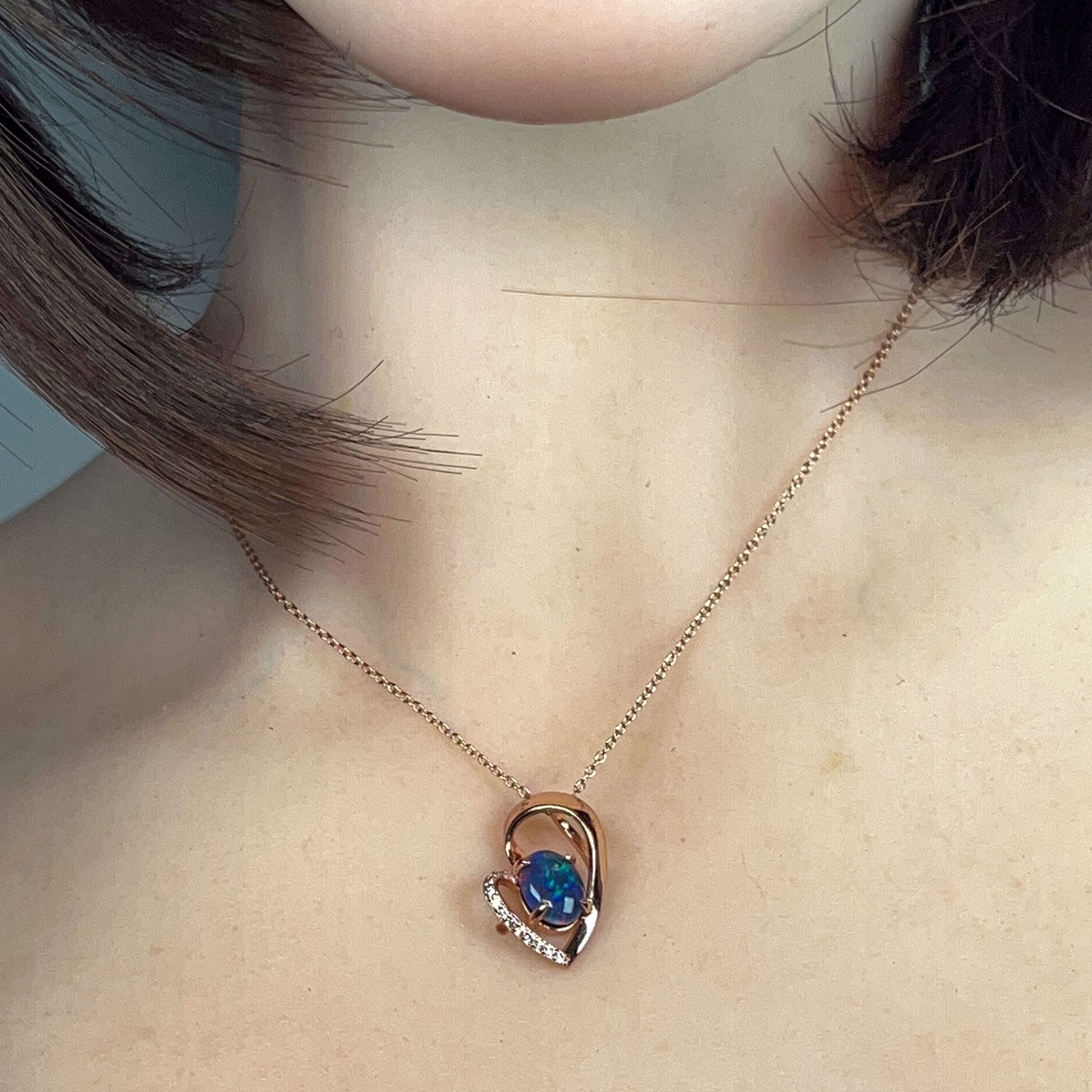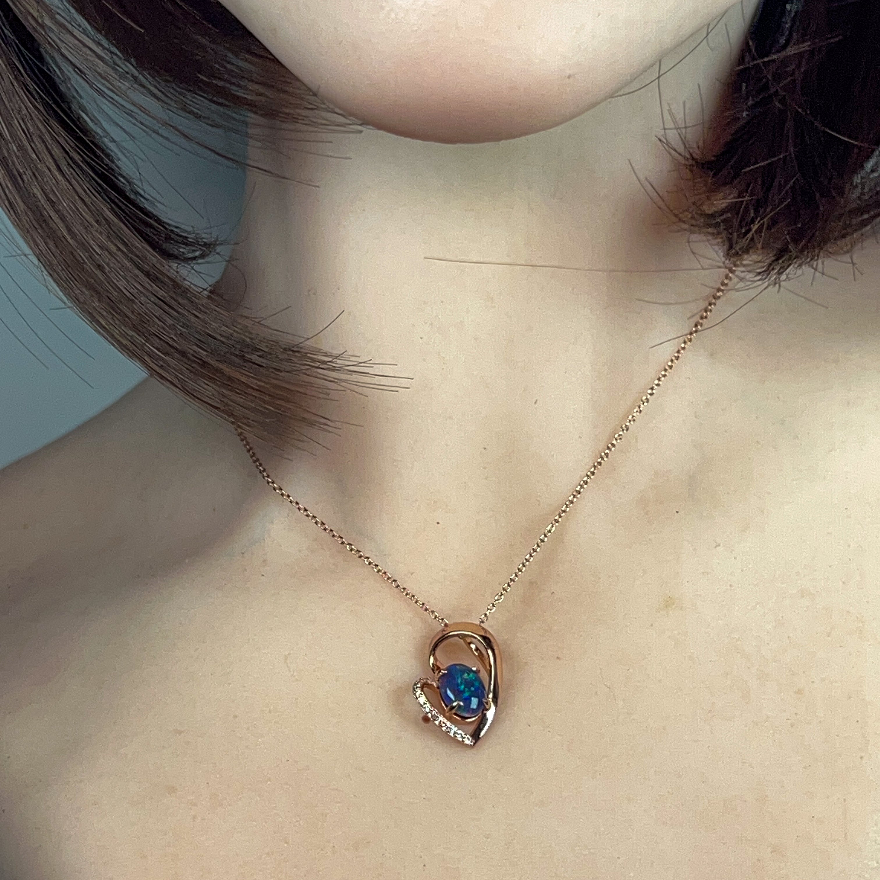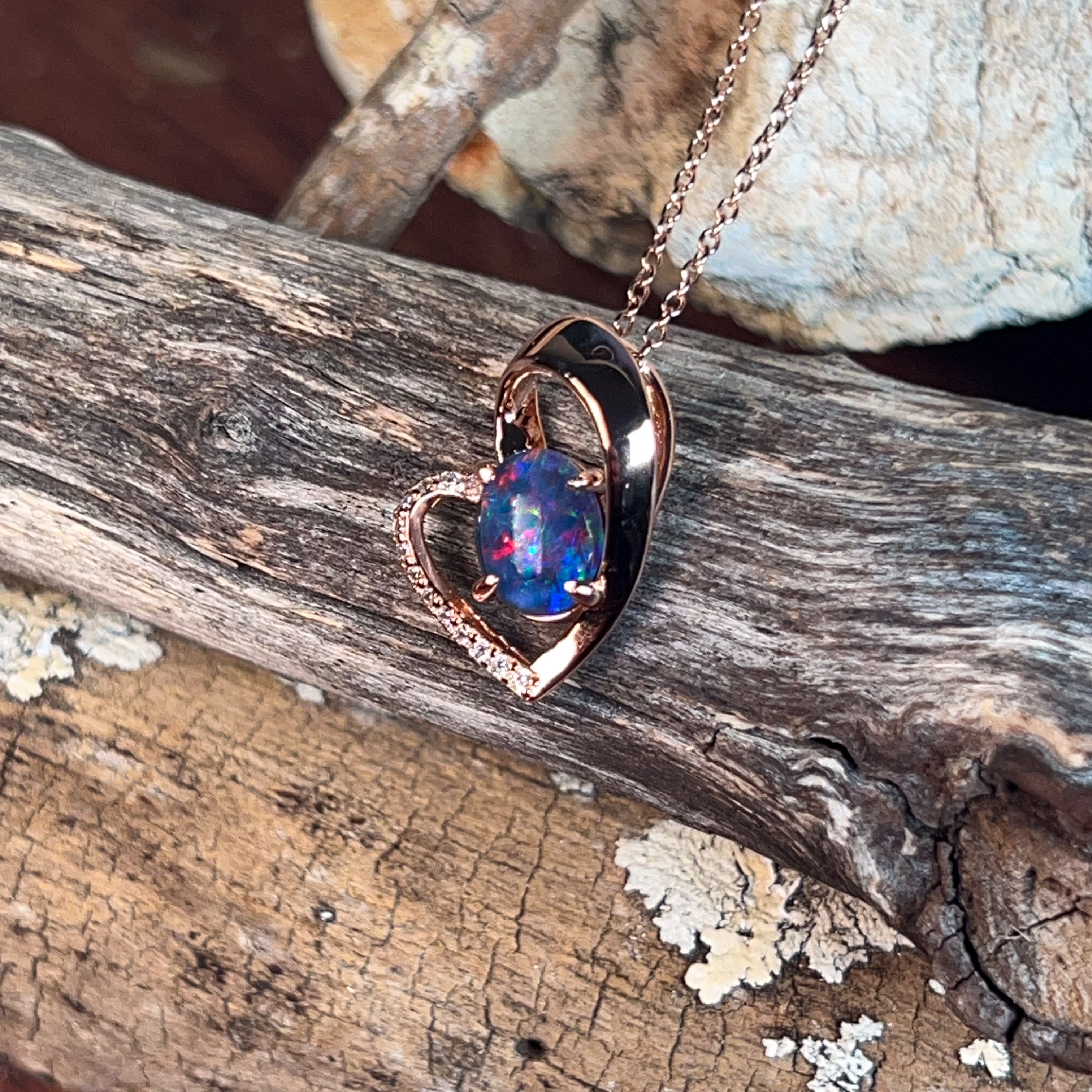 Rose Gold plated sterling Silver heart design Opal Triplet 9x7mm pendant