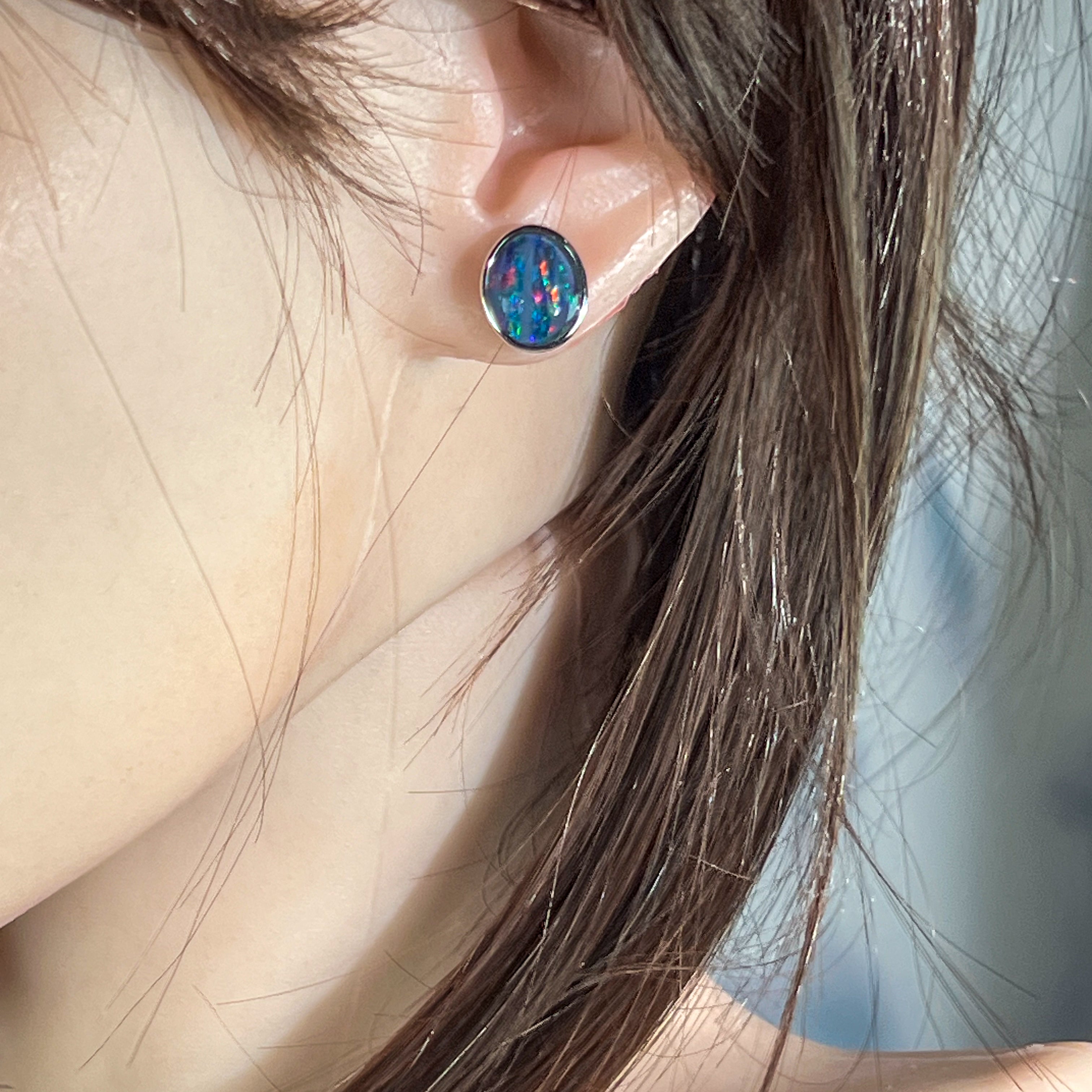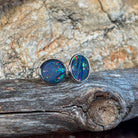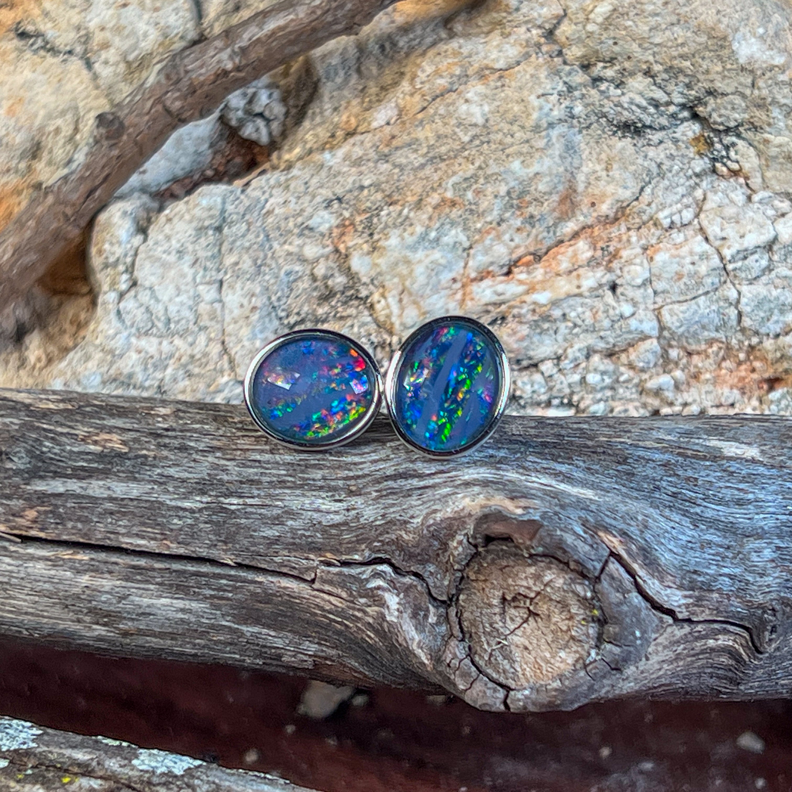 Sterling Silver 12x10mm Opal triplet studs oval shape