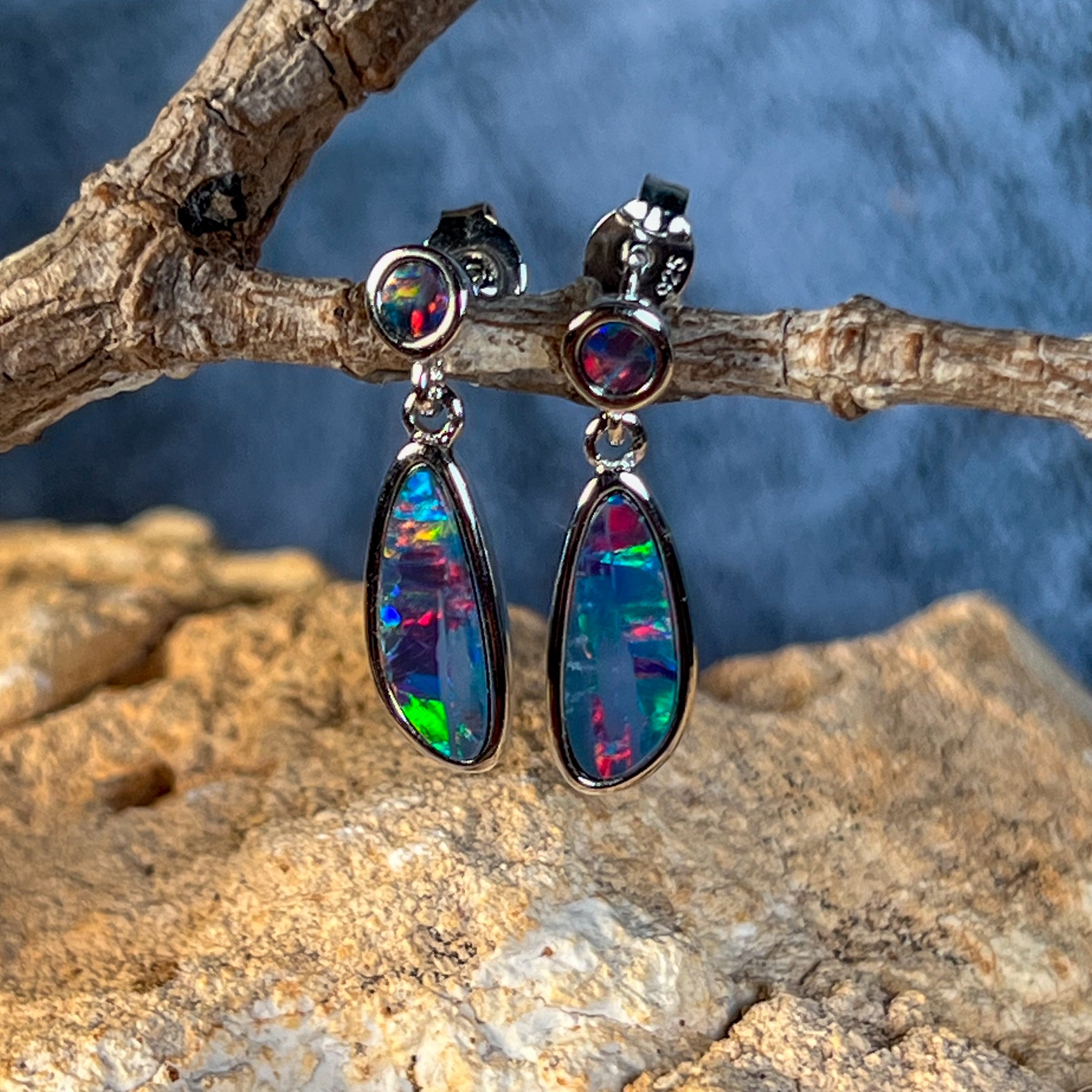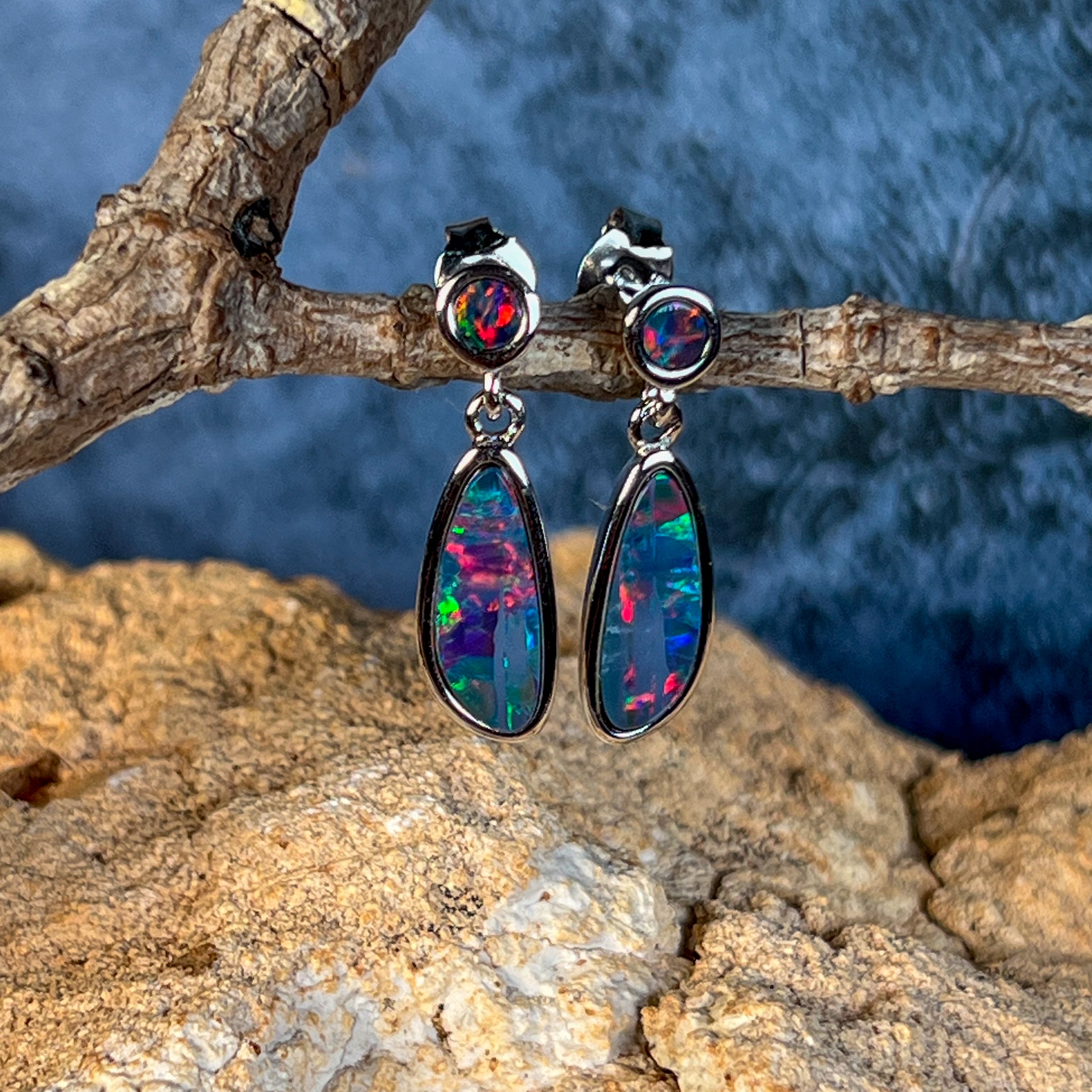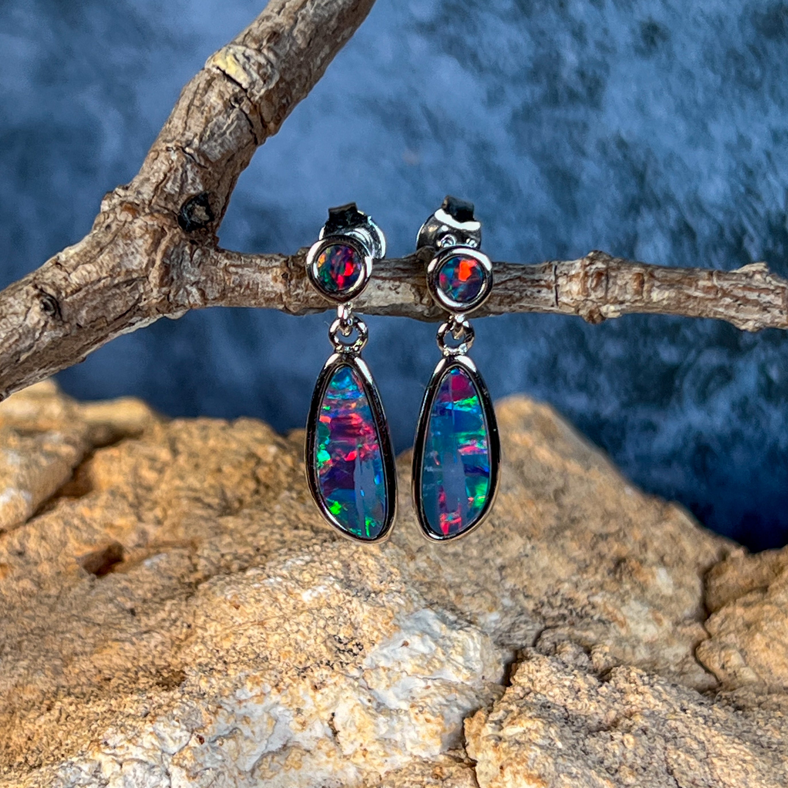 Sterling Silver Blue Red Fire Opal doublet colour earrings