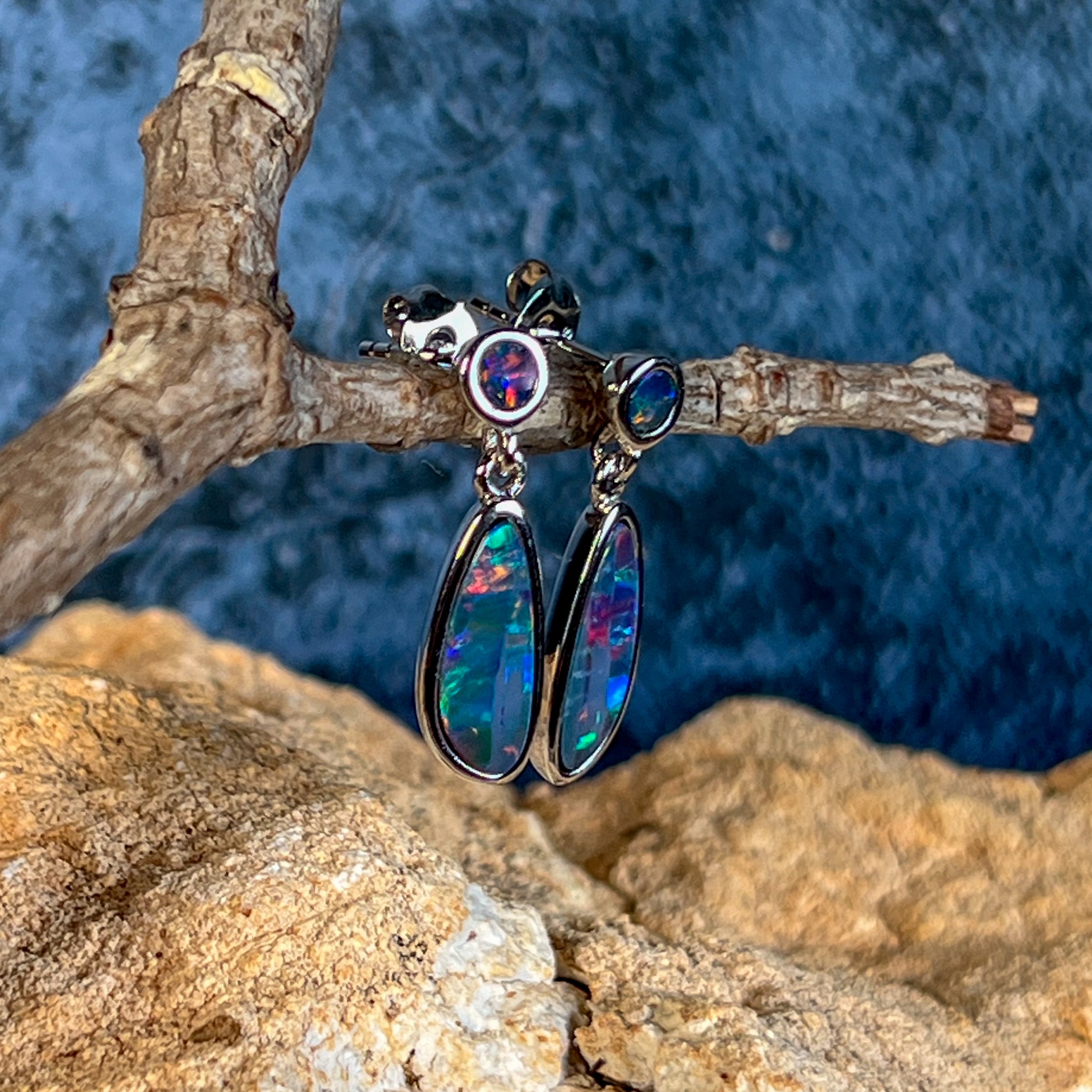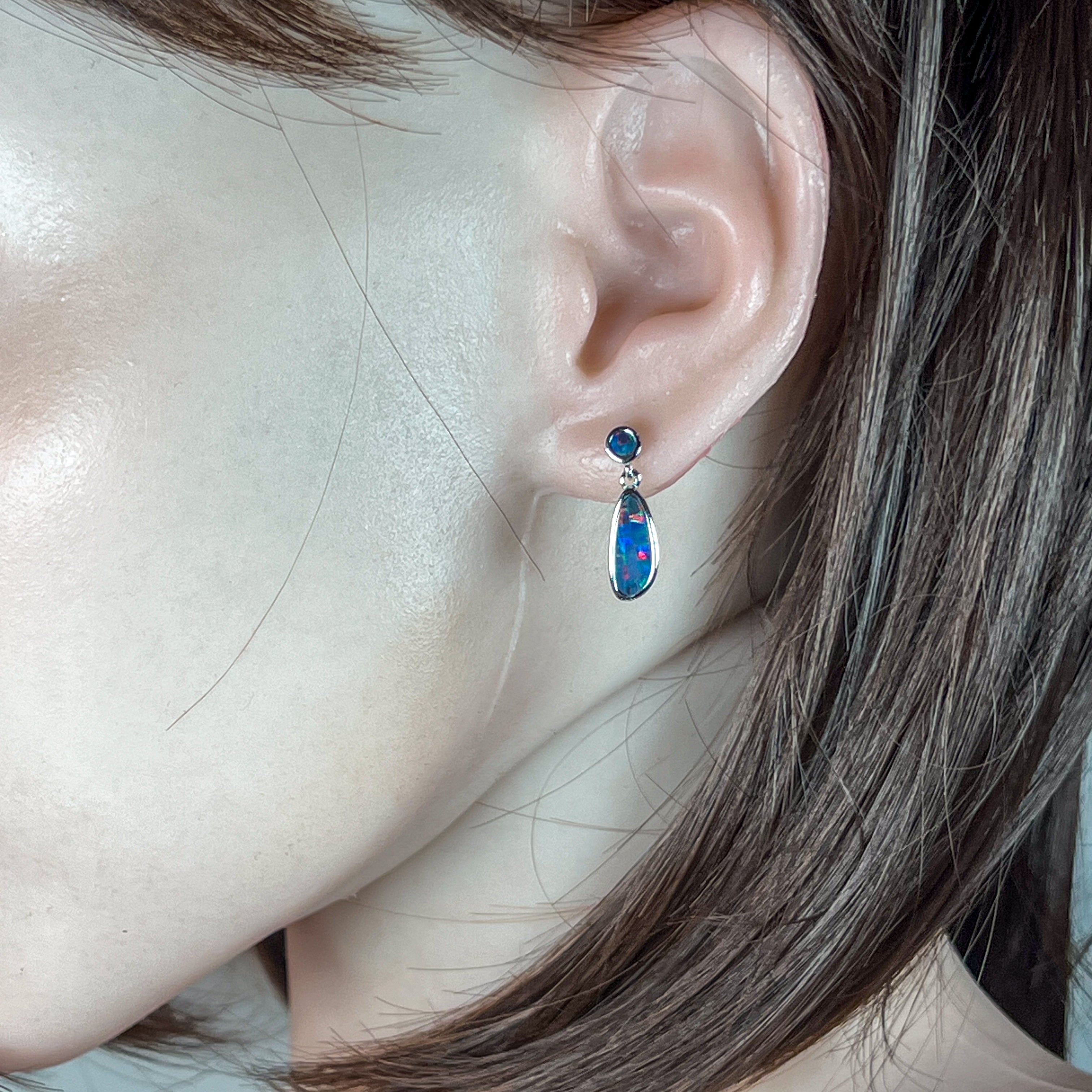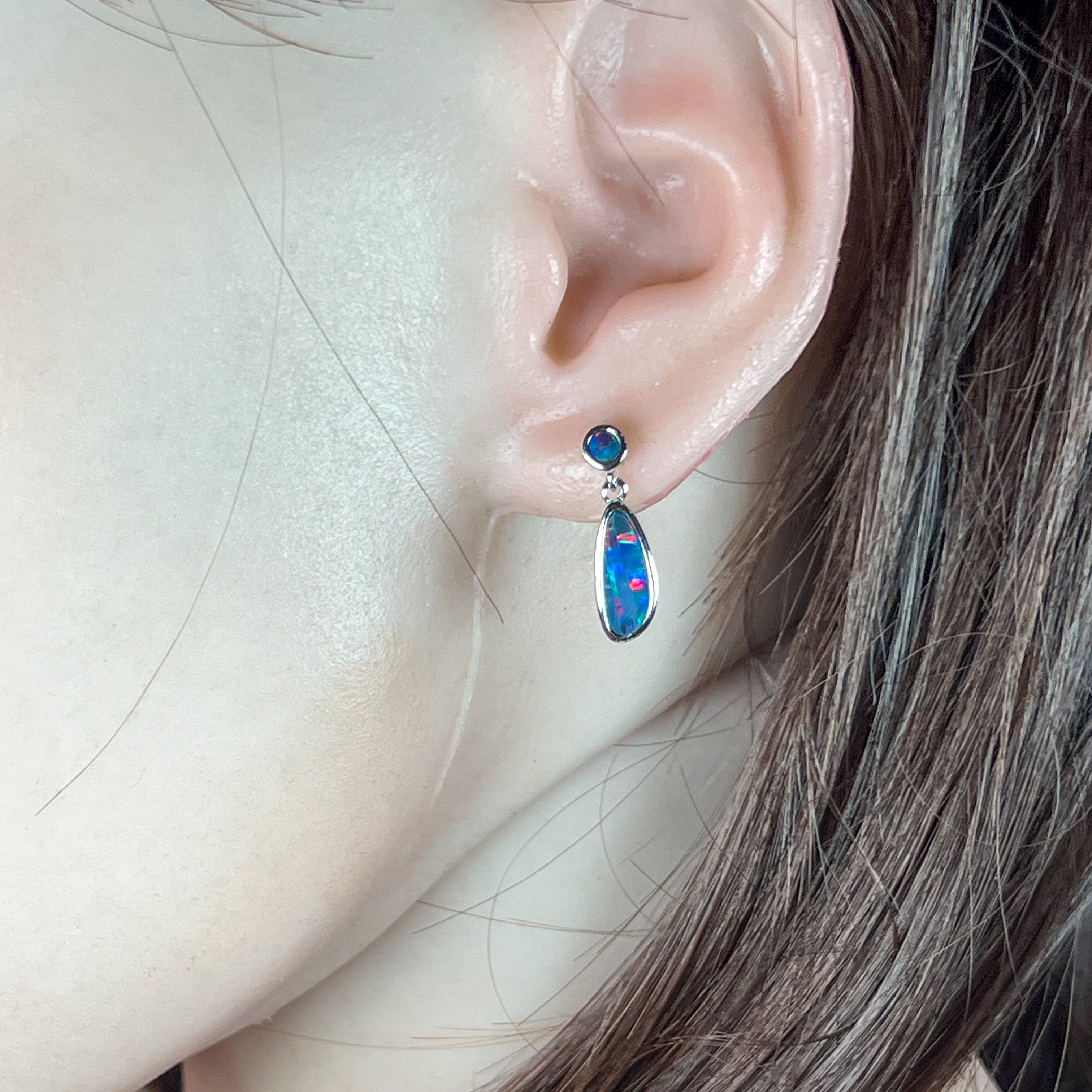 Sterling Silver Blue Red Fire Opal doublet colour earrings