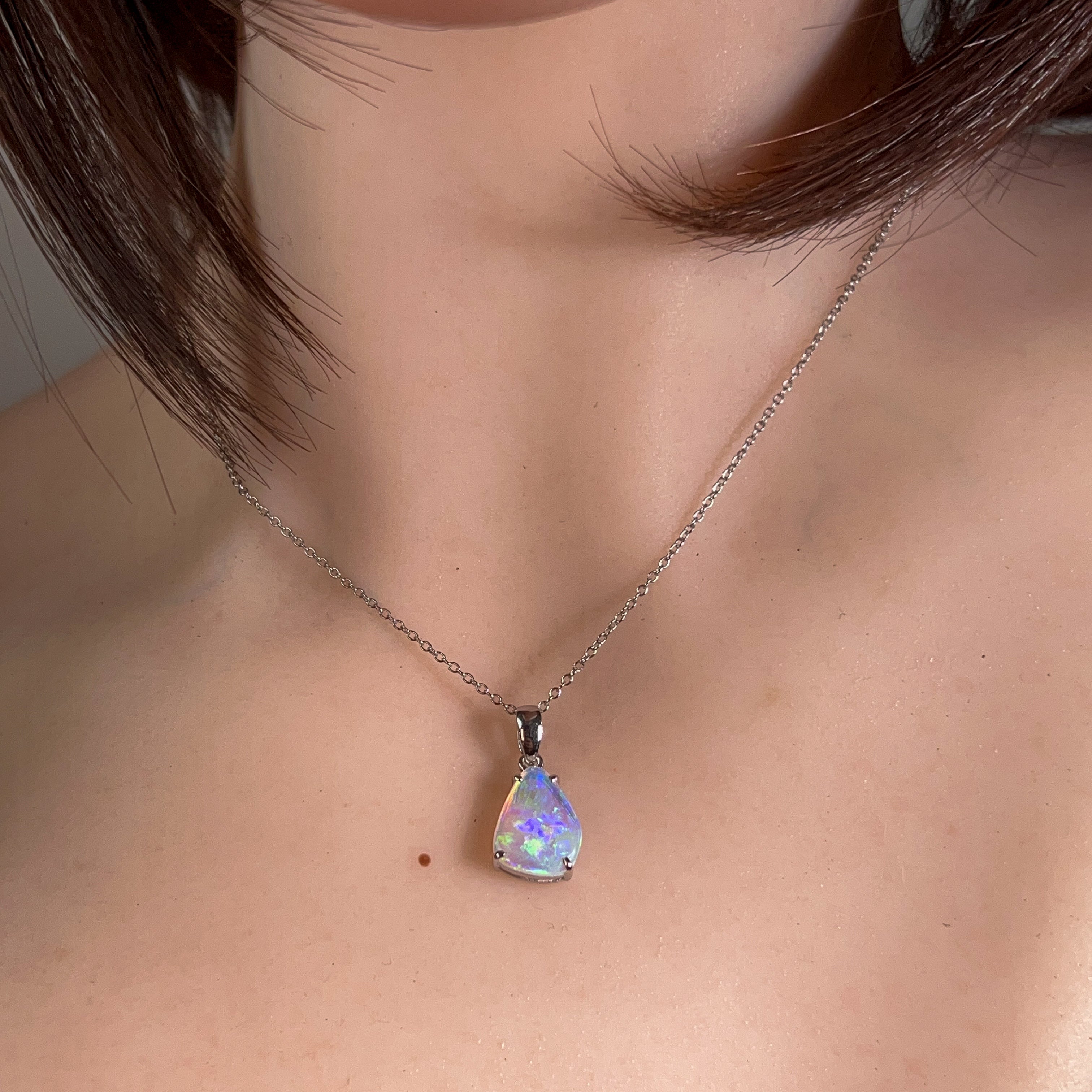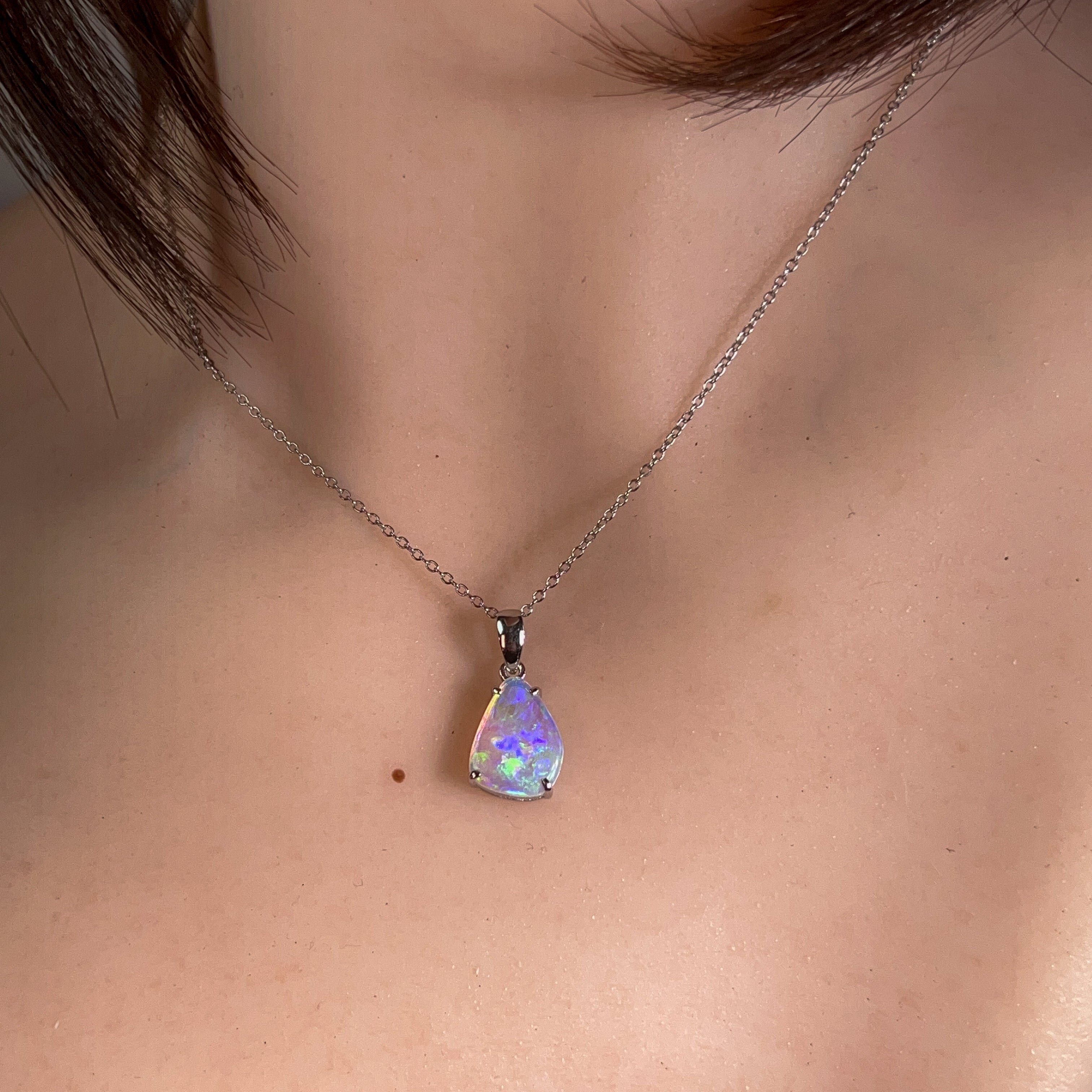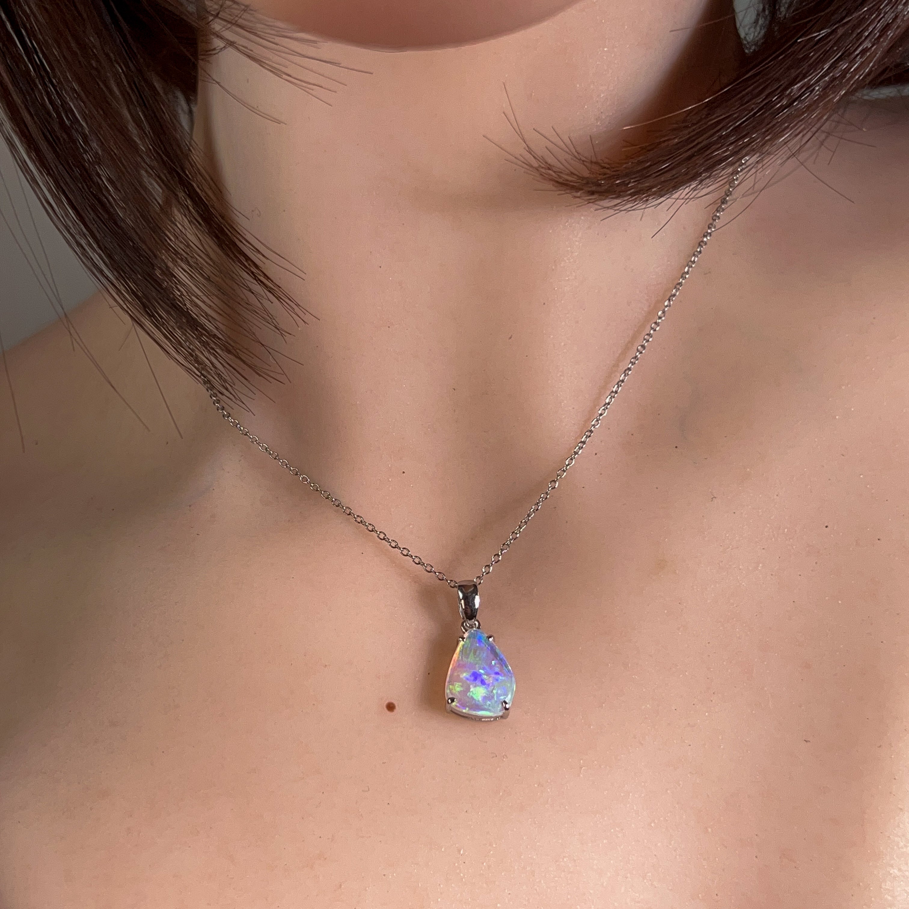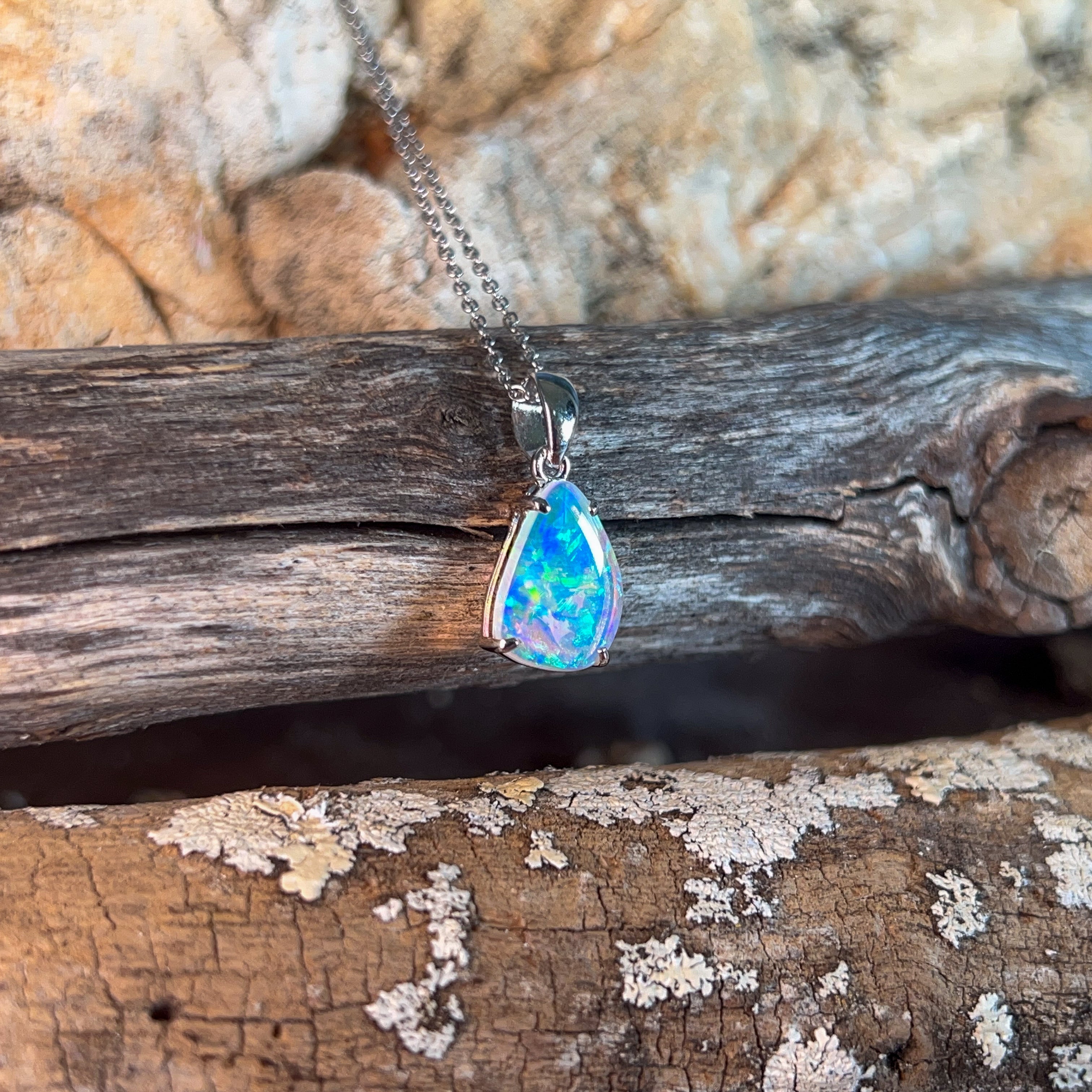 Discover the mesmerizing beauty of this sterling silver pendant, showcasing a stunning 1.4-carat crystal opal in its natural freeform shape. Each piece captures the opal's distinctive play-of-colour, displaying vibrant flashes of green, blue, and gold that shift with every movement. Crafted from premium sterling silver, this pendant offers timeless elegance with authentic gemstone character. Perfect for those seeking a distinctive statement piece that celebrates the raw, organic appeal of genuine Australian opal. An investment in natural beauty that tells its own unique story.
