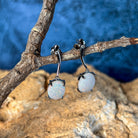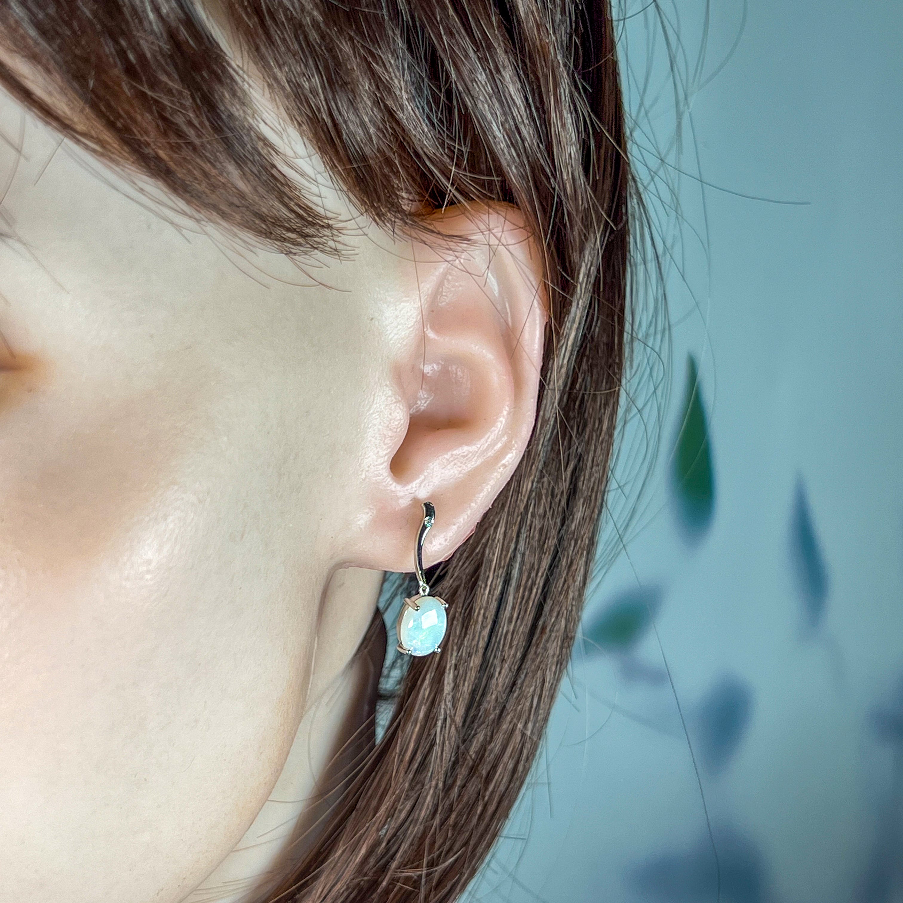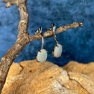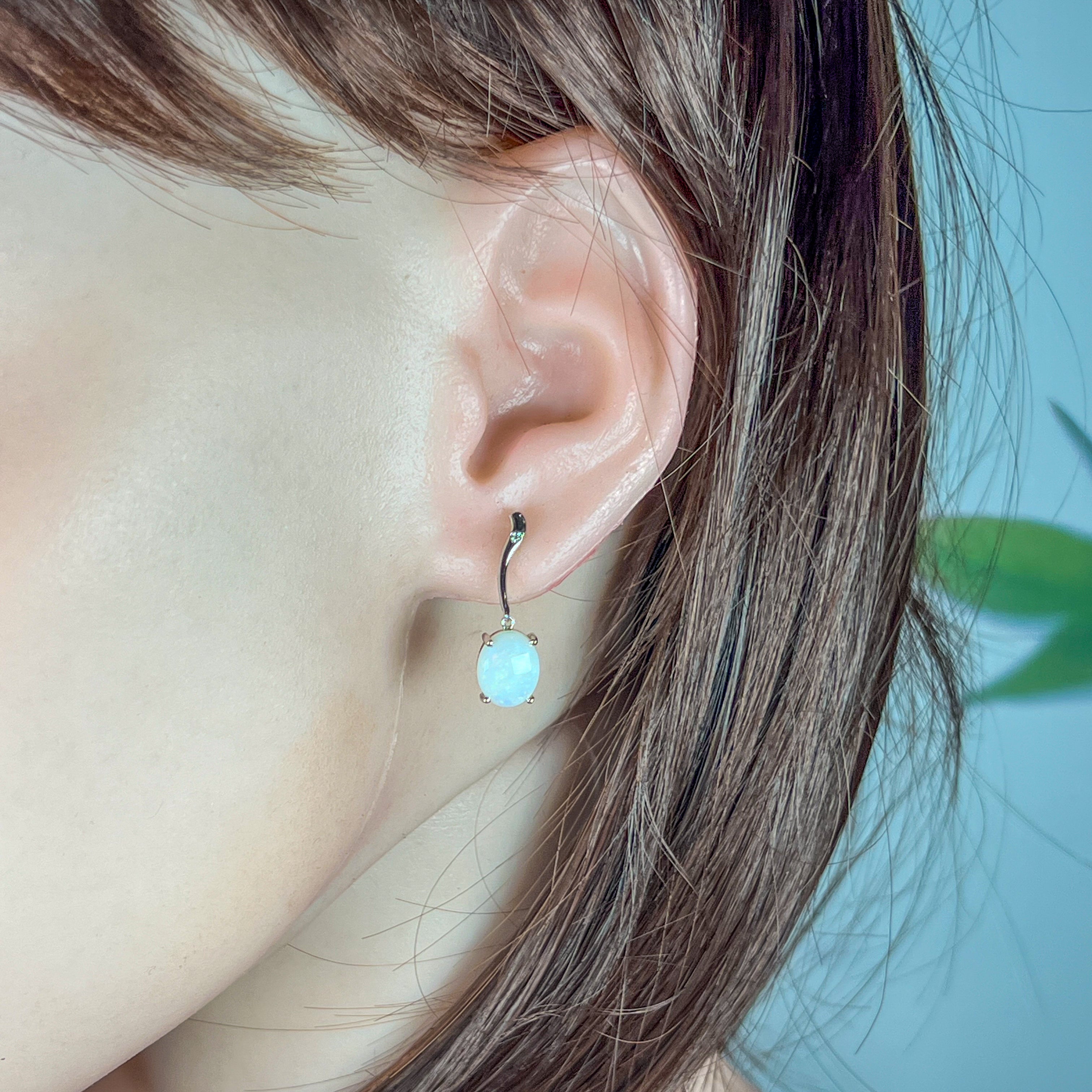 Sterling Silver dangling 10x8mm White Opal claw set curve bar earrings