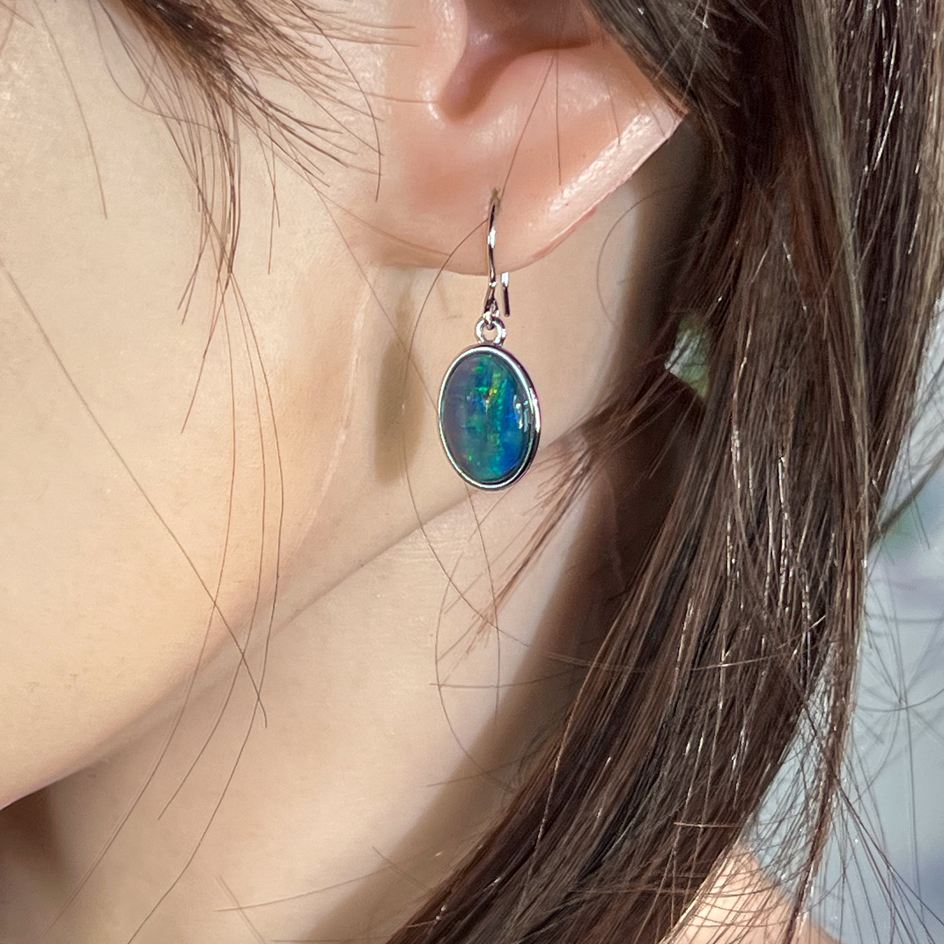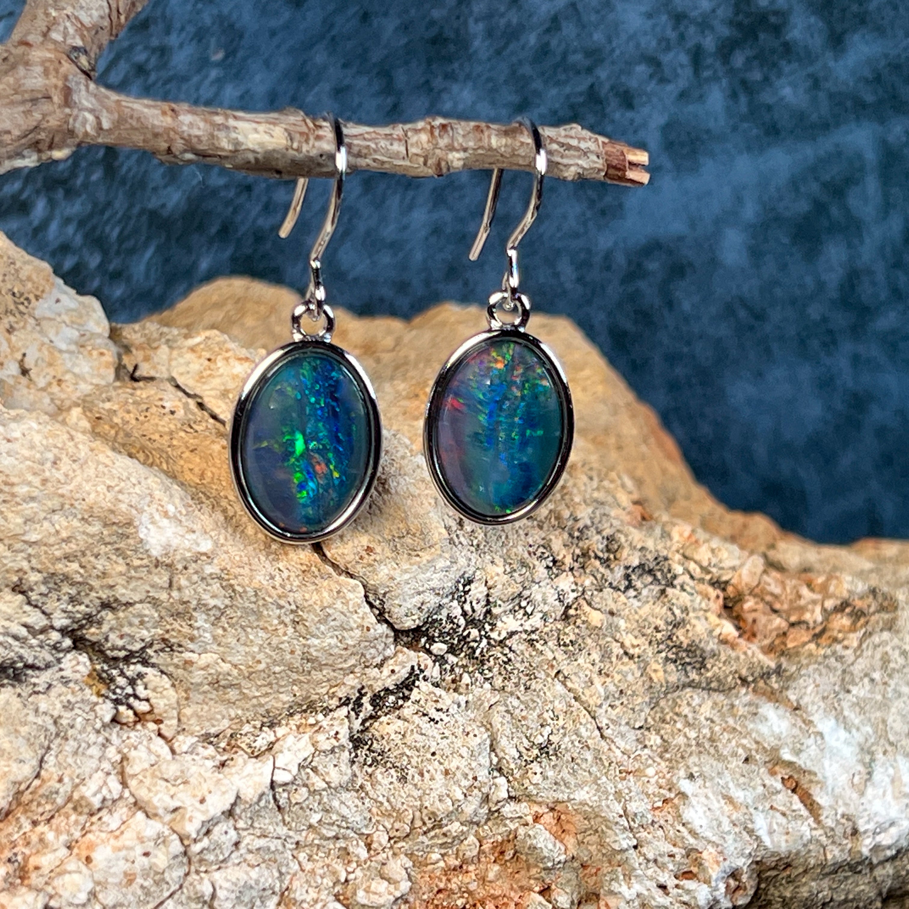 Catch light and movement with these captivating sterling silver dangle earrings, featuring stunning opal triplet ovals that shimmer with every turn of your head. The secure hook closures ensure they stay put while the graceful drop design flatters all face shapes. Perfect for adding a touch of elegance to everyday wear or special occasions, these earrings showcase the mesmerising play-of-colour that makes Australian opals so treasured. Lightweight yet eye-catching, they're the ideal choice for anyone seeking jewellery that combines beauty with wearability.