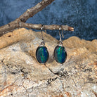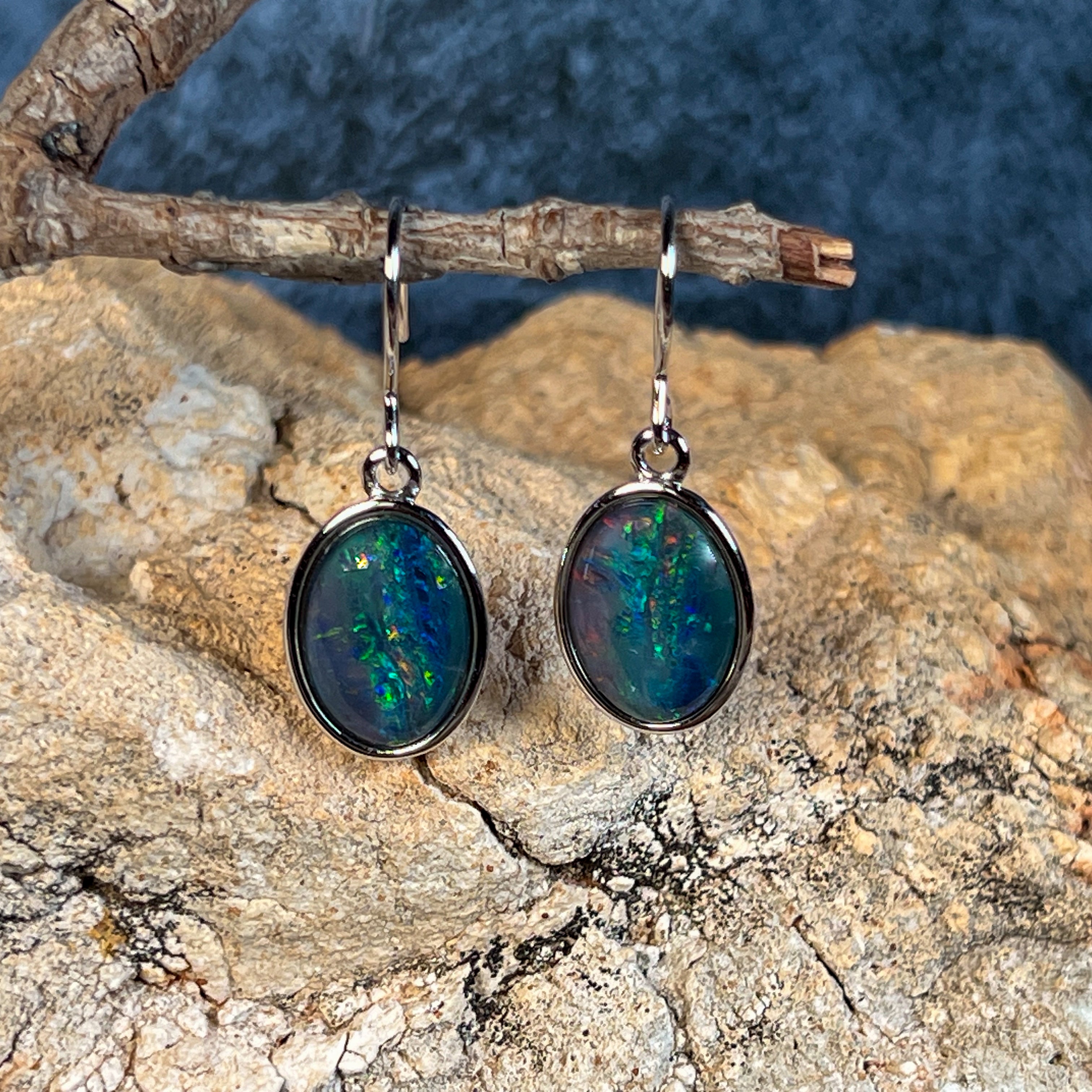 Sterling Silver dangling Opal triplet oval earrings on hooks