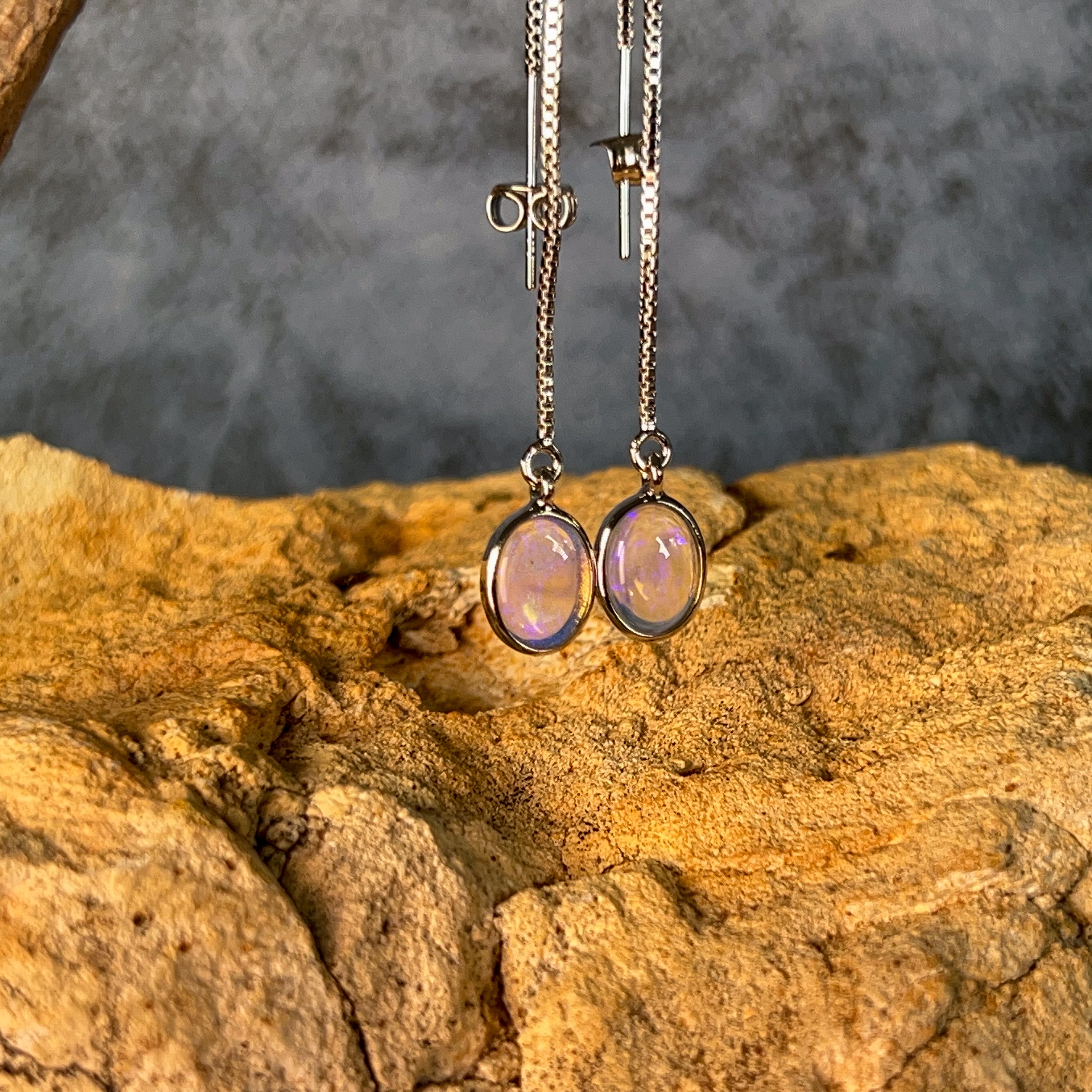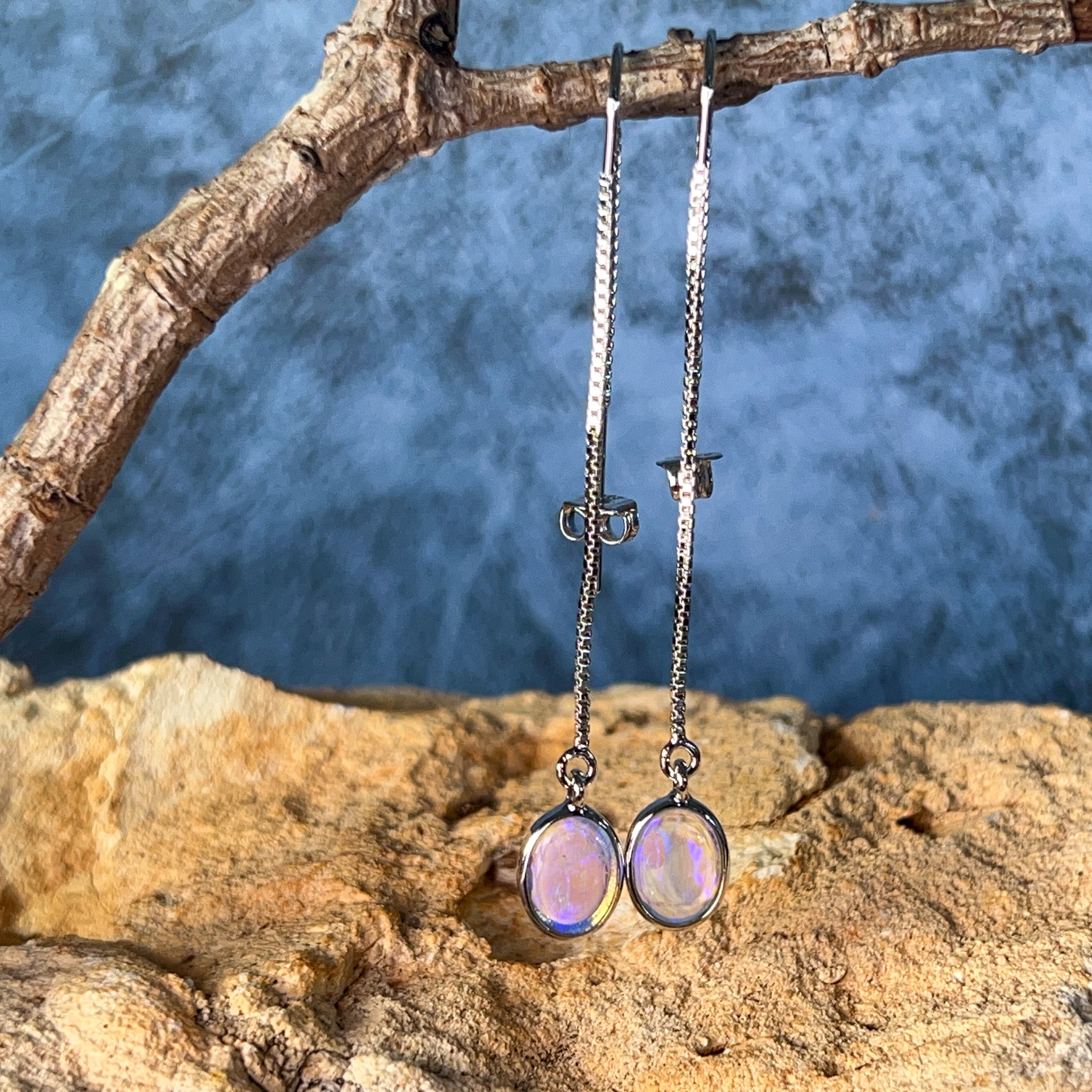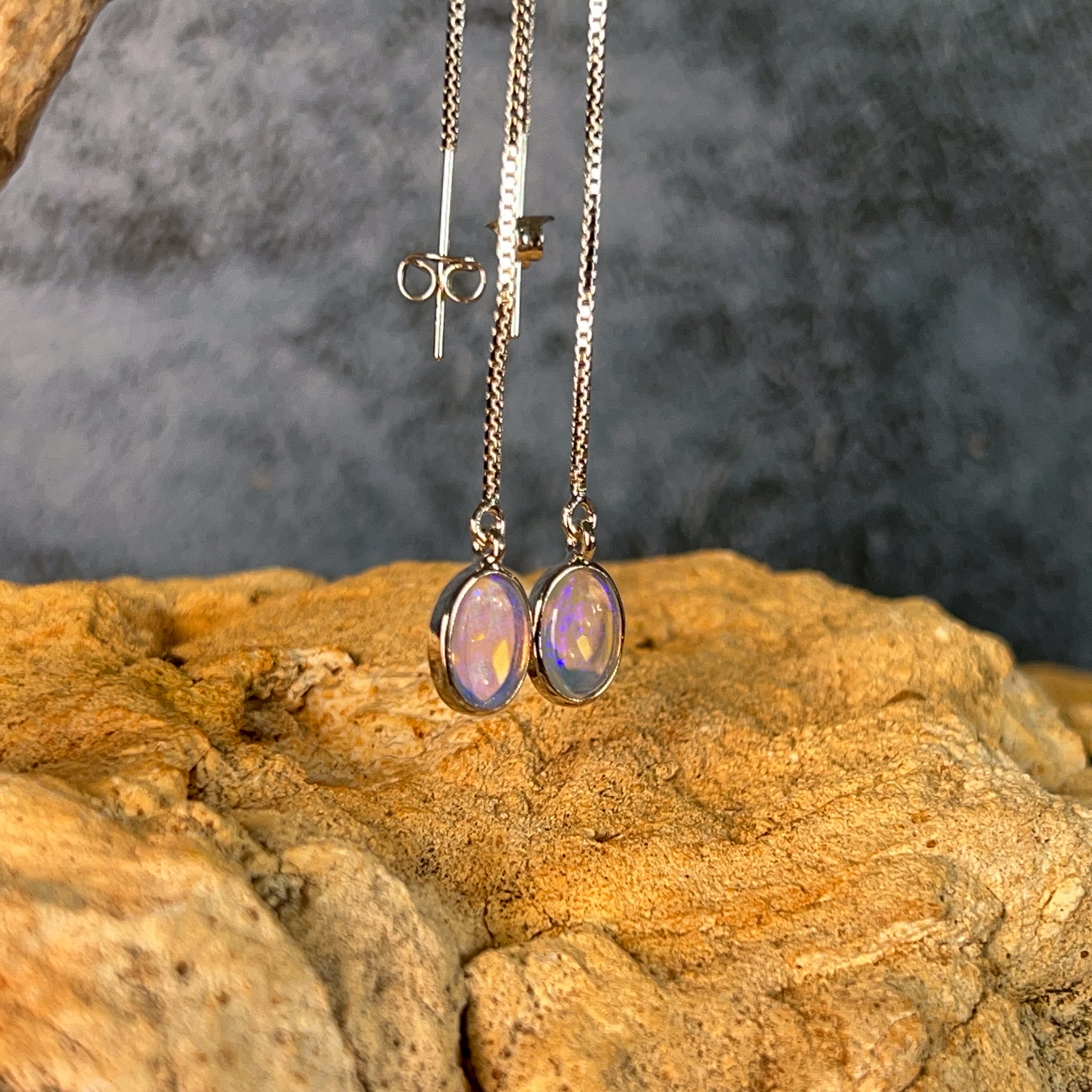Elevate your everyday elegance with these stunning Sterling Silver dangling thread style Crystal Opal earrings. Each piece showcases the mesmerizing play of colour unique to genuine crystal opals, suspended delicately from fine silver threads that catch the light with every movement. Perfect for those who appreciate understated sophistication with a touch of natural brilliance, these earrings transition seamlessly from day to night. The lightweight design ensures all-day comfort, while the timeless aesthetic makes them an investment piece you'll treasure for years. Discover why opal jewellery remains a beloved choice for discerning jewellery lovers.