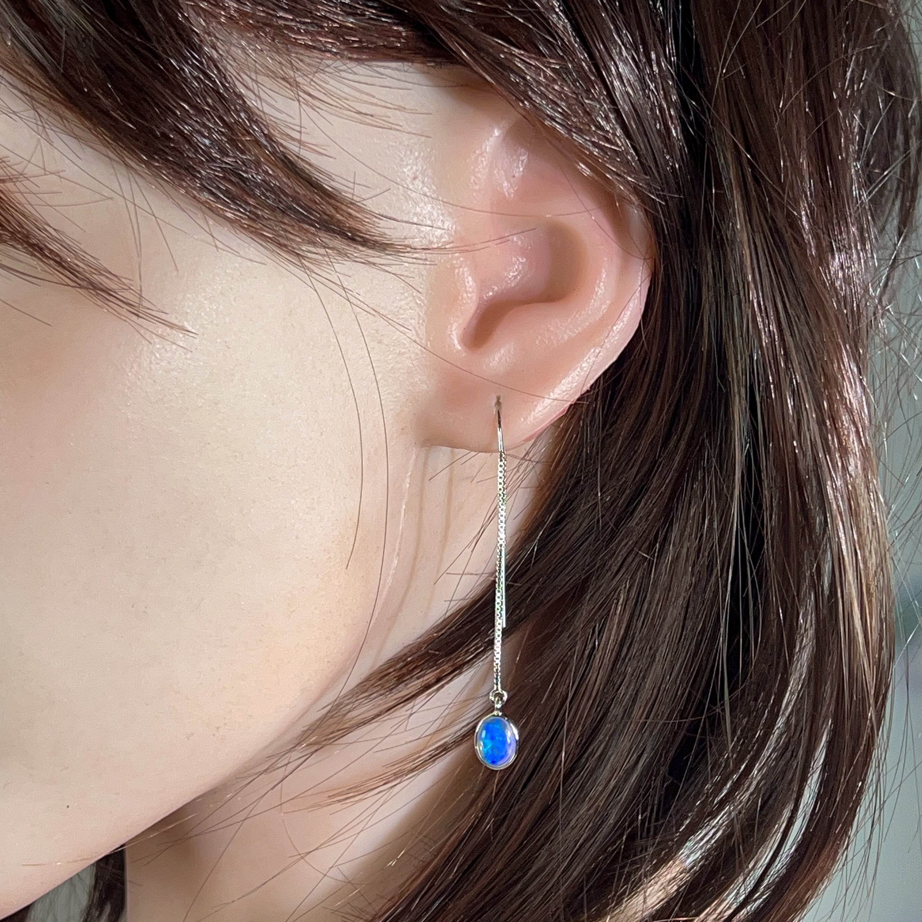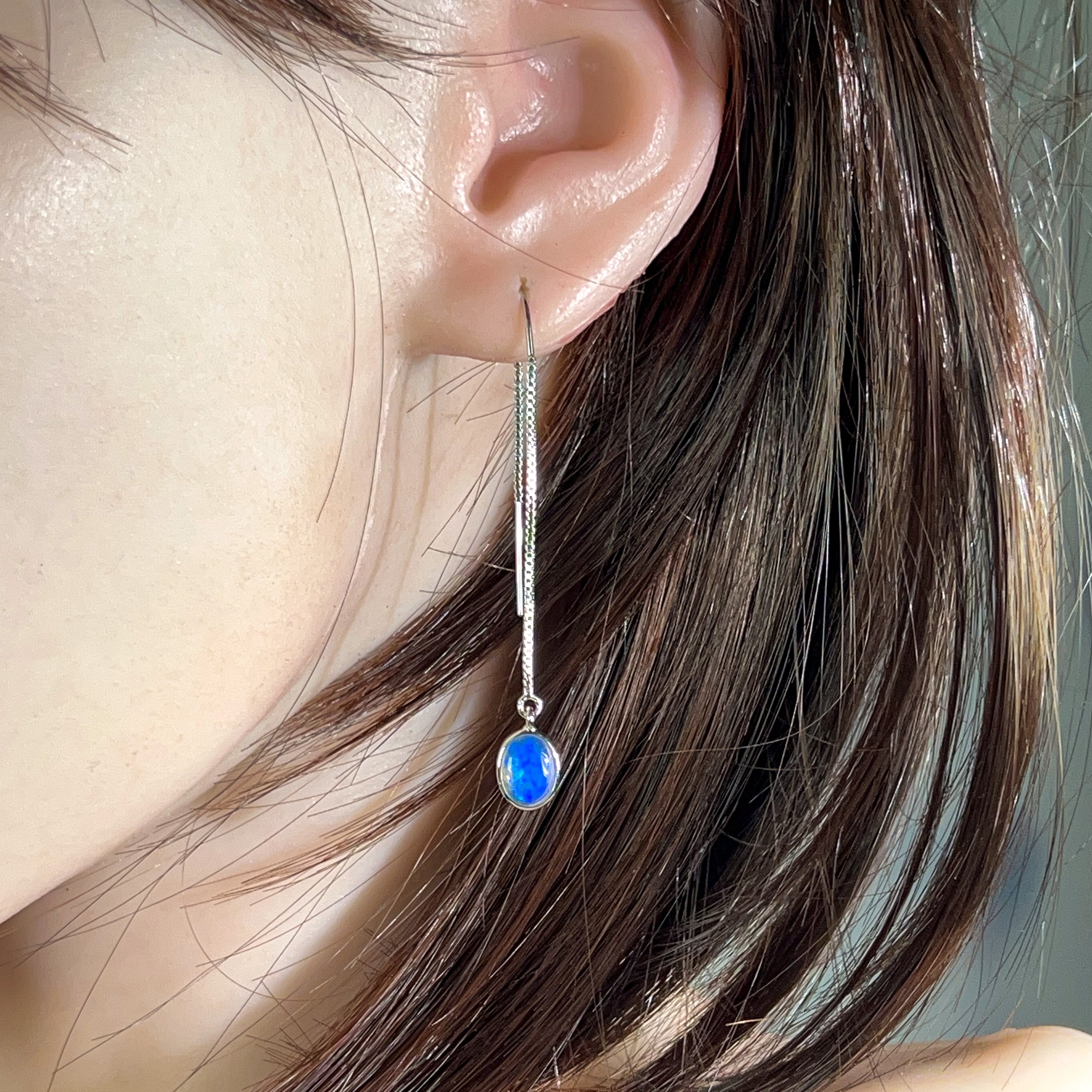 Sterling Silver dangling thread style Crystal Opal earrings