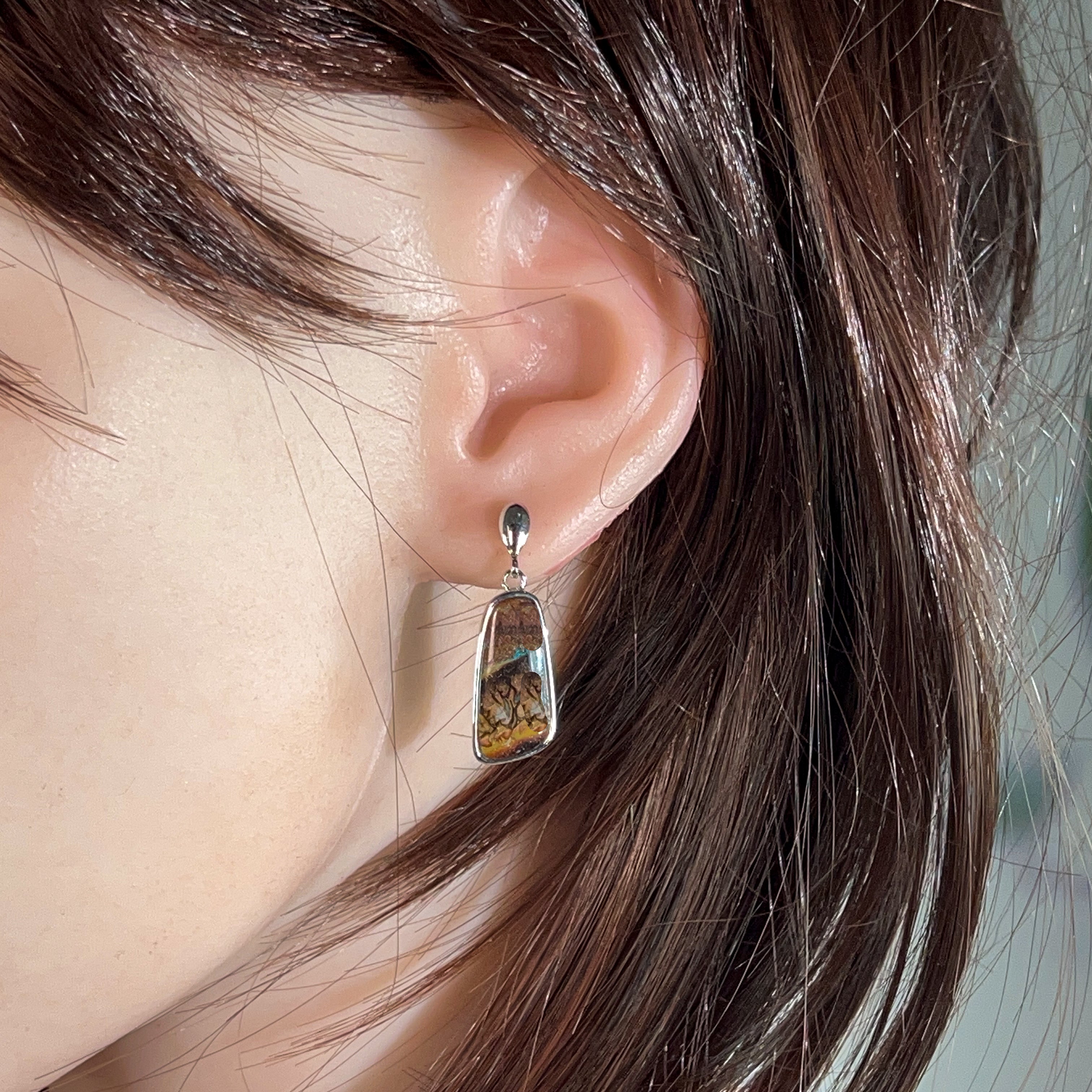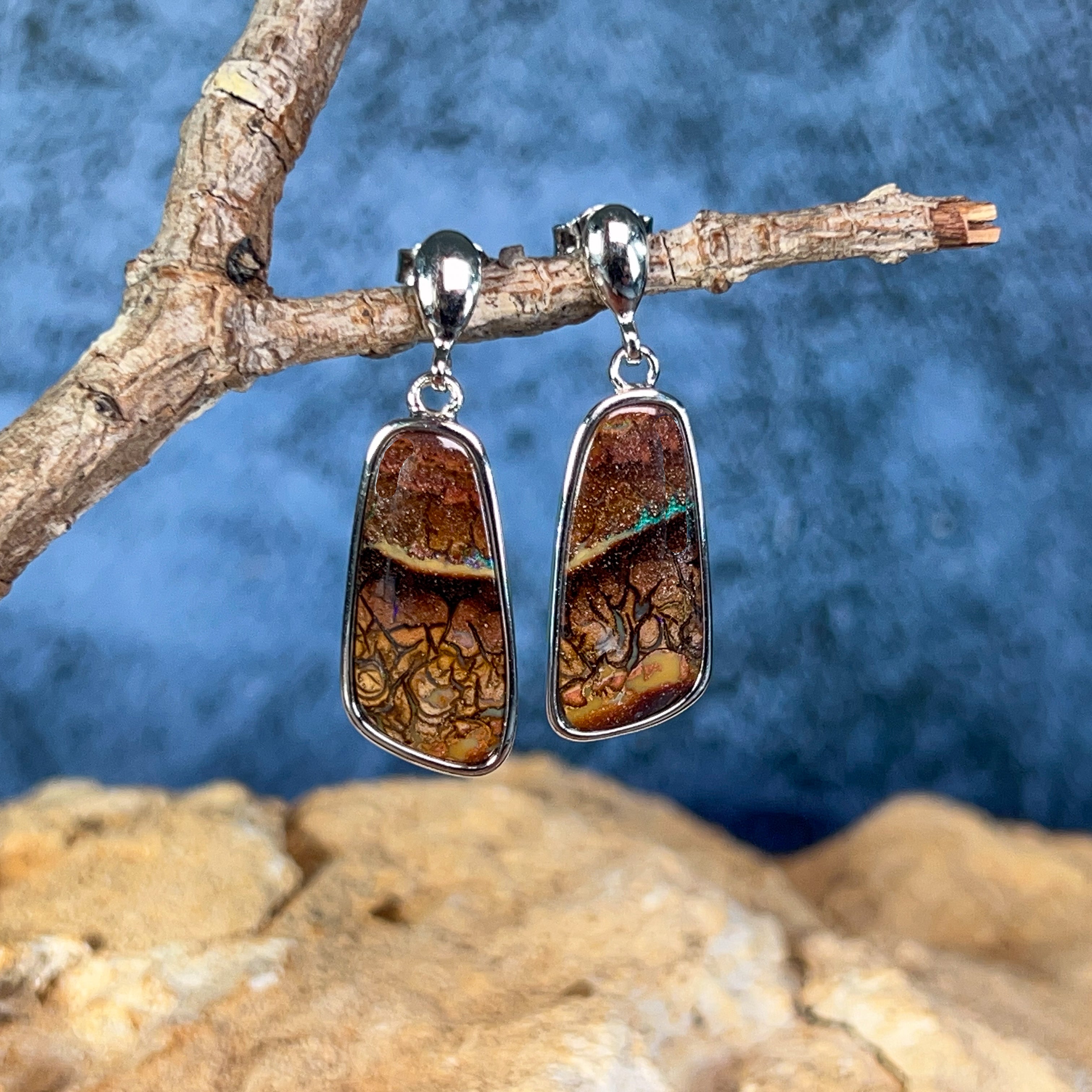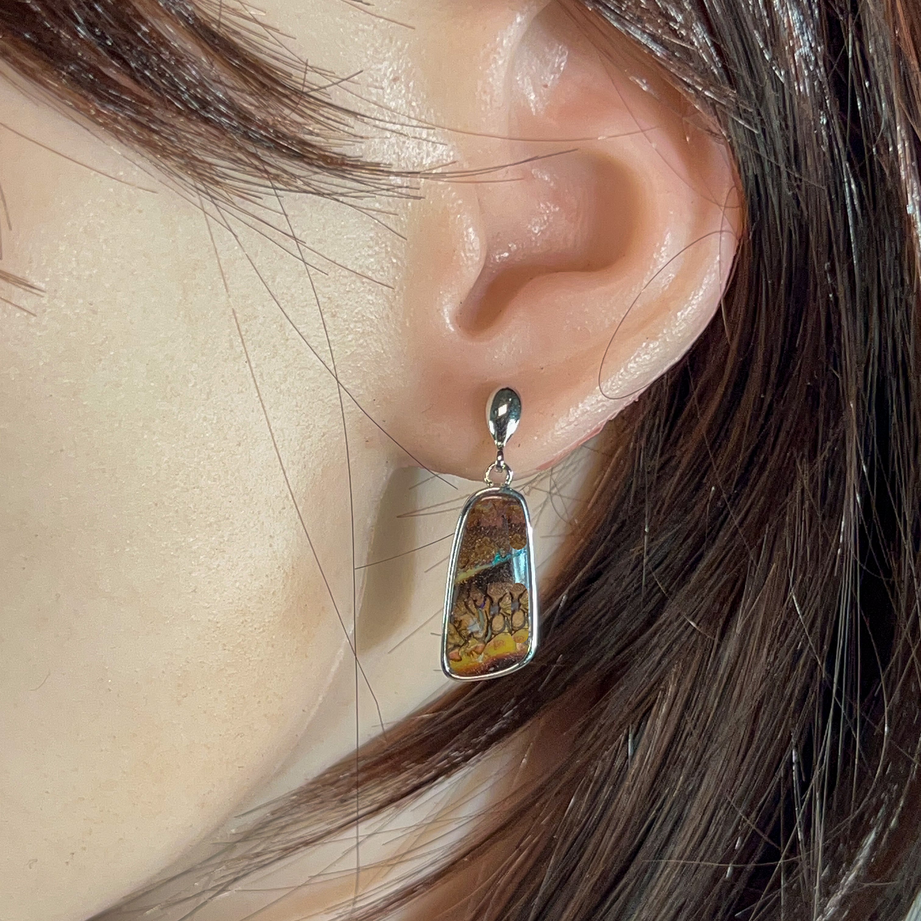 Discover the natural allure of our Sterling Silver dangling freeform Matrix Opal earrings—where organic beauty meets timeless elegance. Each pair showcases genuine matrix opal's mesmerizing play of colour, set in lustrous sterling silver that complements any complexion. The freeform design celebrates the stone's unique character, ensuring no two pairs are identical. Perfect for those who appreciate authentic gemstones and distinctive jewellery that tells a story. These versatile earrings transition effortlessly from everyday wear to special occasions, making them an investment piece you'll treasure for years to come.