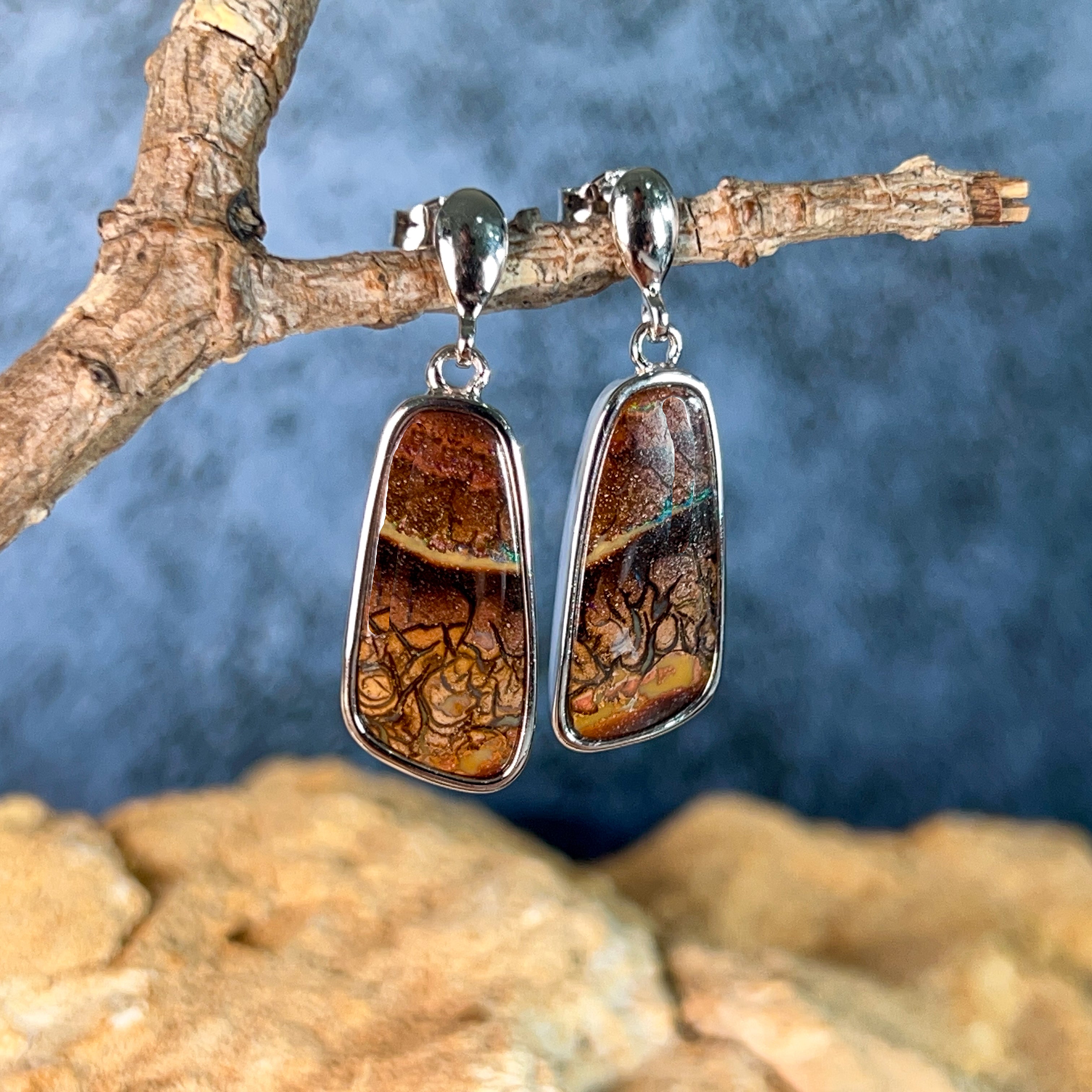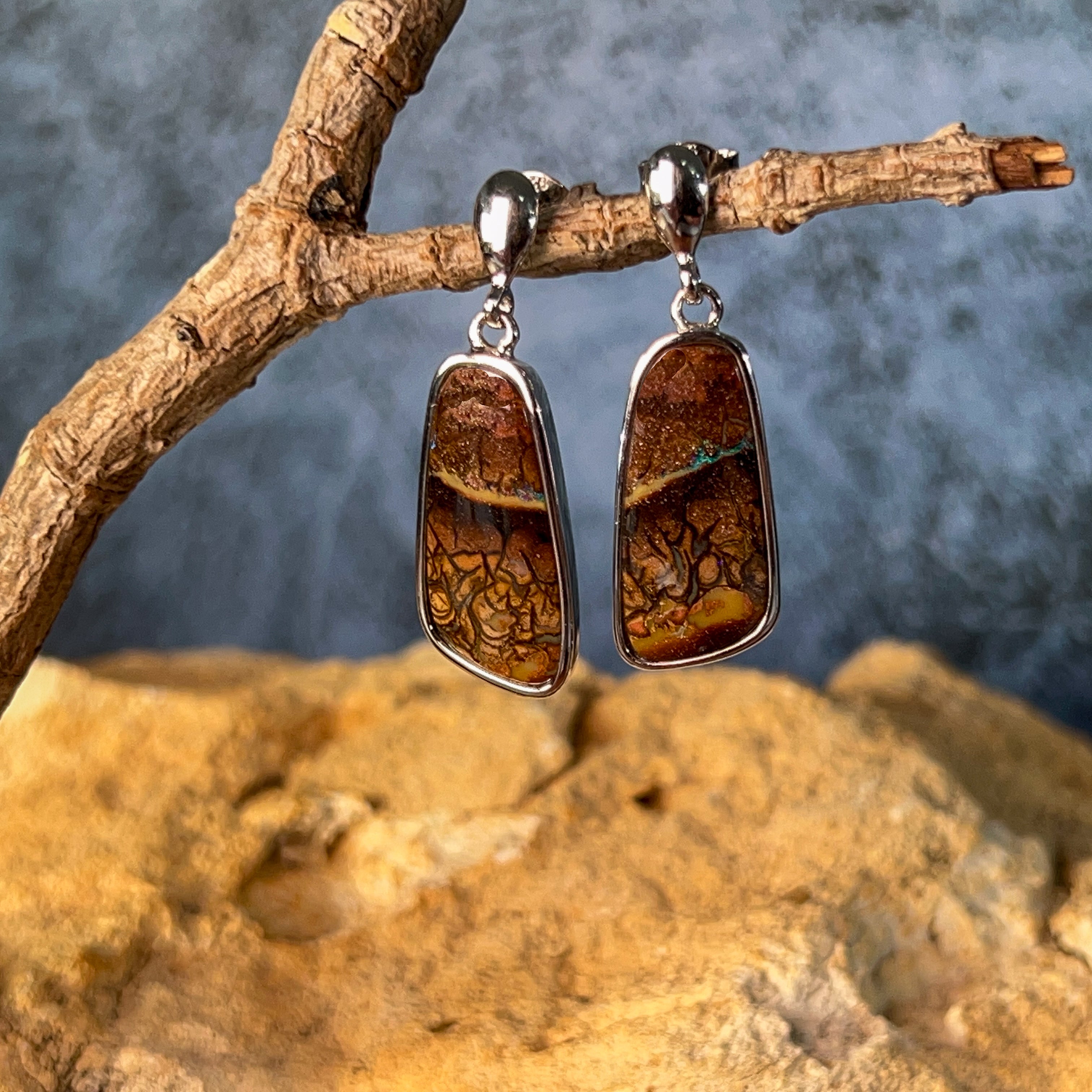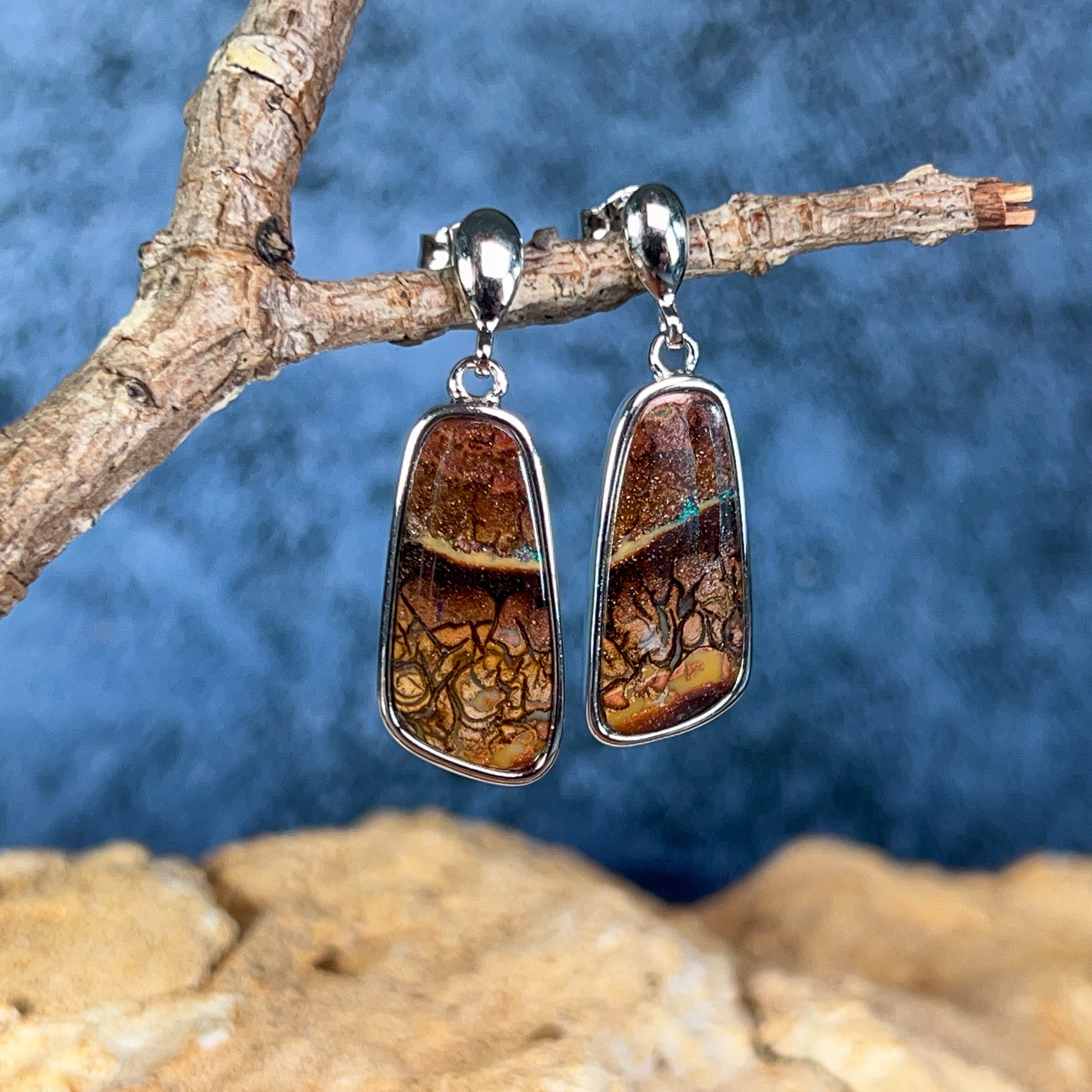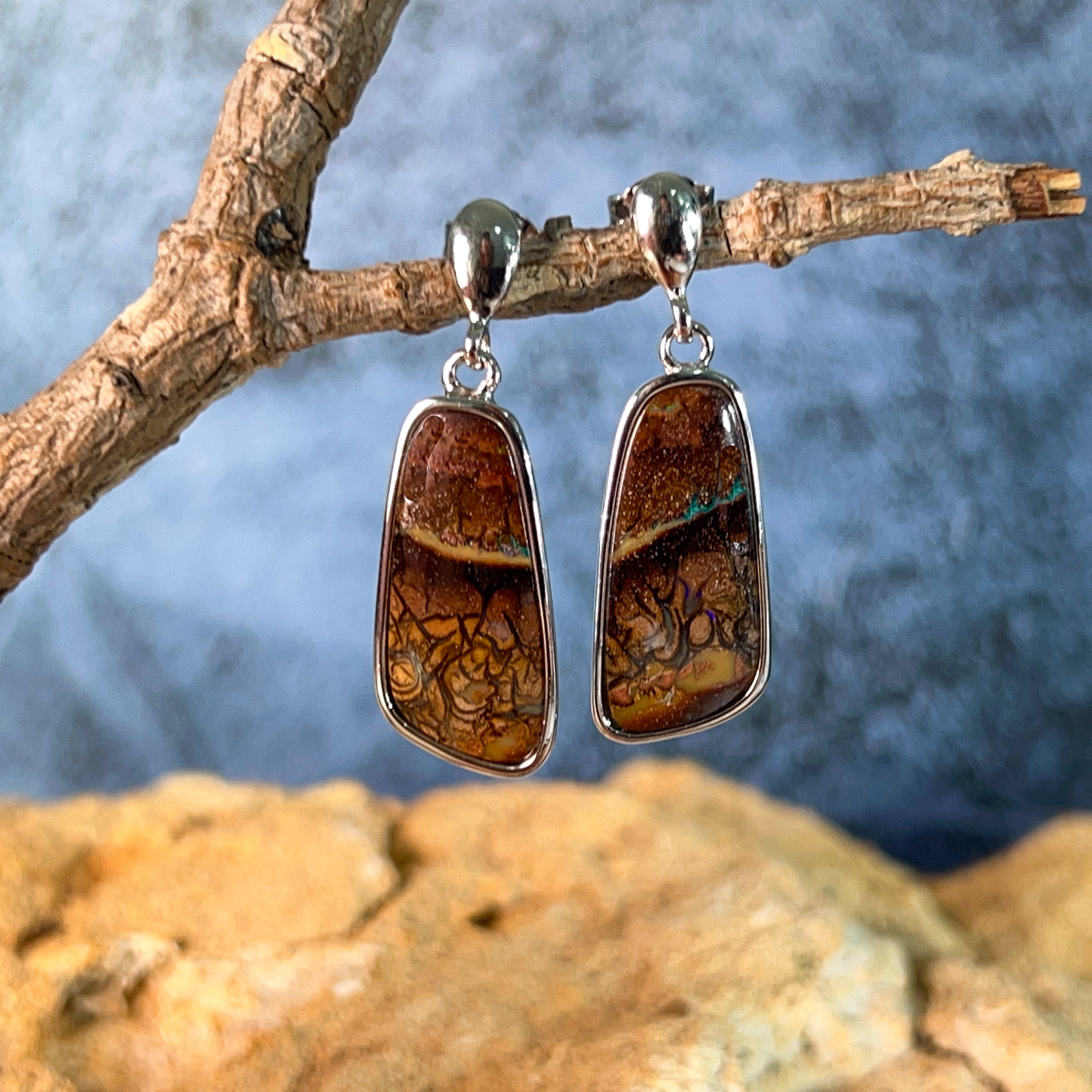 Discover the natural allure of our Sterling Silver dangling freeform Matrix Opal earrings—where organic beauty meets timeless elegance. Each pair showcases genuine matrix opal's mesmerizing play of colour, set in lustrous sterling silver that complements any complexion. The freeform design celebrates the stone's unique character, ensuring no two pairs are identical. Perfect for those who appreciate authentic gemstones and distinctive jewellery that tells a story. These versatile earrings transition effortlessly from everyday wear to special occasions, making them an investment piece you'll treasure for years to come.