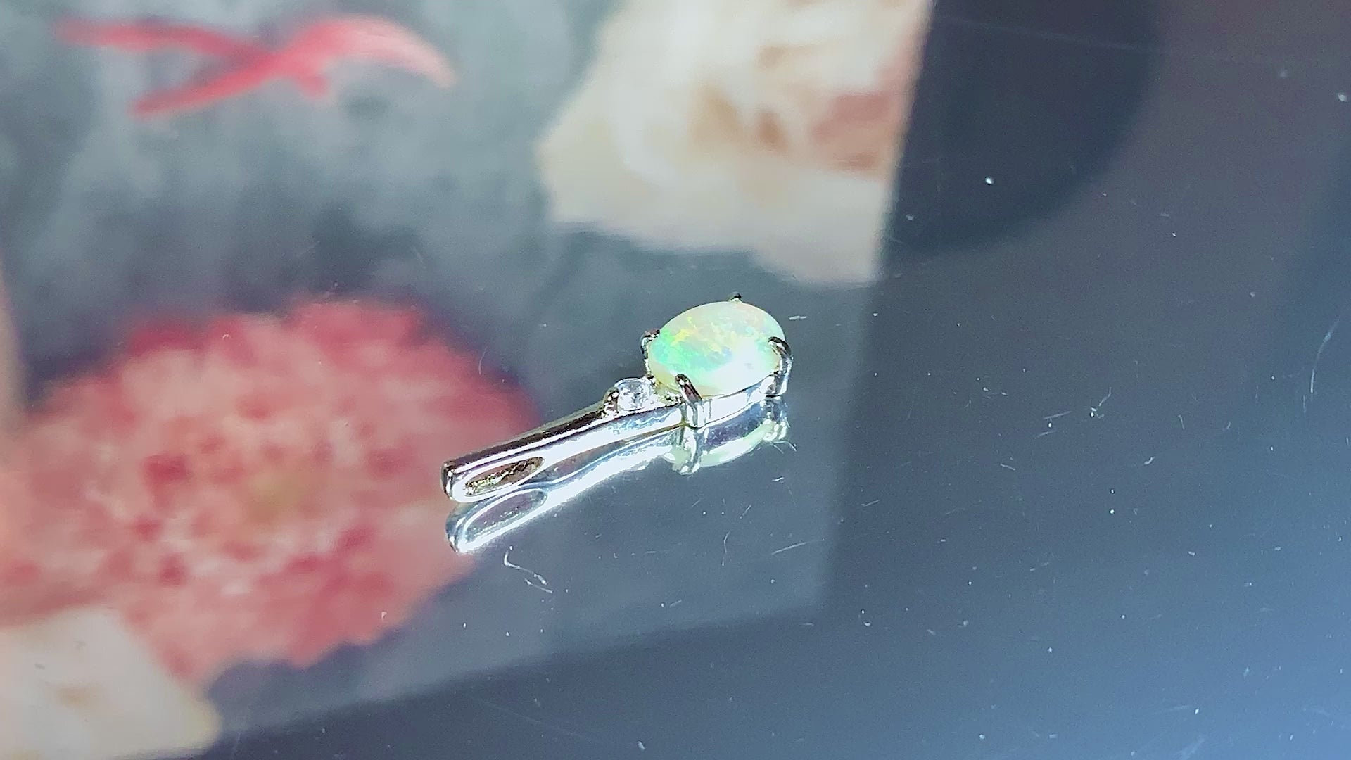 Sterling Silver drop pendant 8x6mm White Opal Necklace