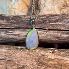 This sterling silver pendant features a beautifully bezel-set freeform light opal measuring 18x11mm. Its unique shape and shimmering play of colors add a touch of elegance to any outfit. Crafted with care, this pendant combines timeless design with the captivating beauty of opal, making it a perfect accessory for everyday wear or special occasions. Elevate your jewelry collection with this classic yet distinctive piece.