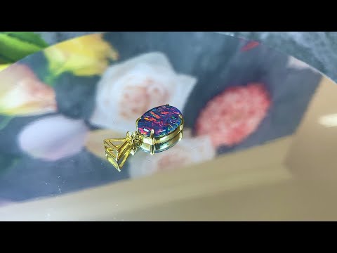 This unique Sterling Silver Gold plated Opal triplet Triangle Loop Pendant will add a touch of sophistication to your jewelry collection. The fire-coloured opals adorn the 14x10mm triangle-shaped pendant with brilliant elegance. Perfect for any occasion.