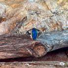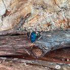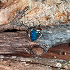 Experience the captivating beauty of this sterling silver ring featuring a unique green and blue opal triplet in a freeform open cut design. The vibrant colors of the opal shimmer with every movement, making it an eye-catching statement piece. Crafted with sterling silver, this ring offers both elegance and durability, perfect for adding a splash of color to any outfit. Its distinctive shape and vivid hues ensure you stand out with a blend of modern artistry and timeless charm. Elevate your jewelry collection with this striking, one-of-a-kind opal ring.