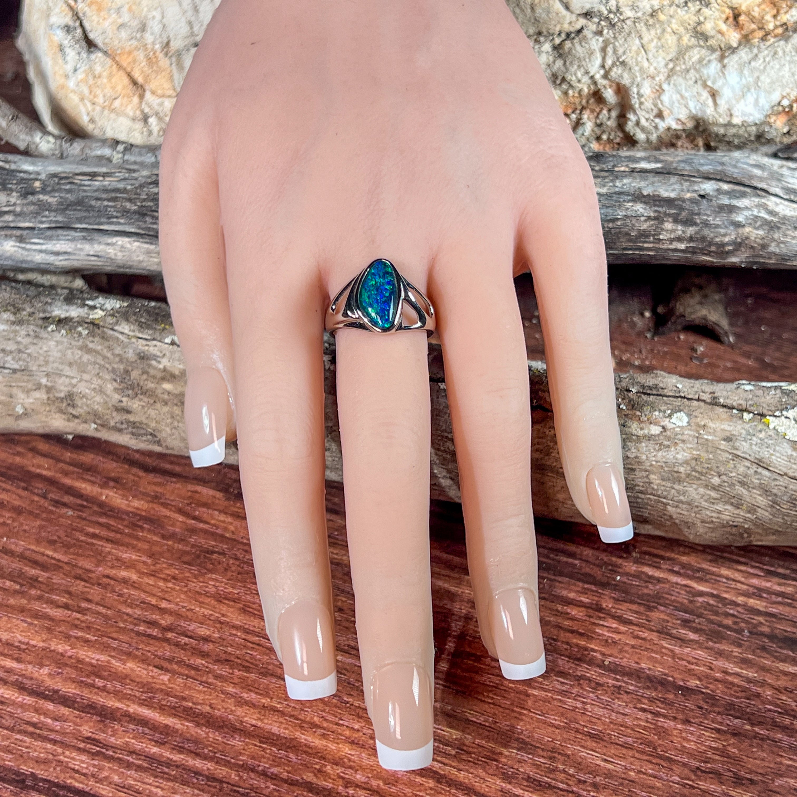 Sterling Silver Green Blue Opal triplet freeform open cut ring