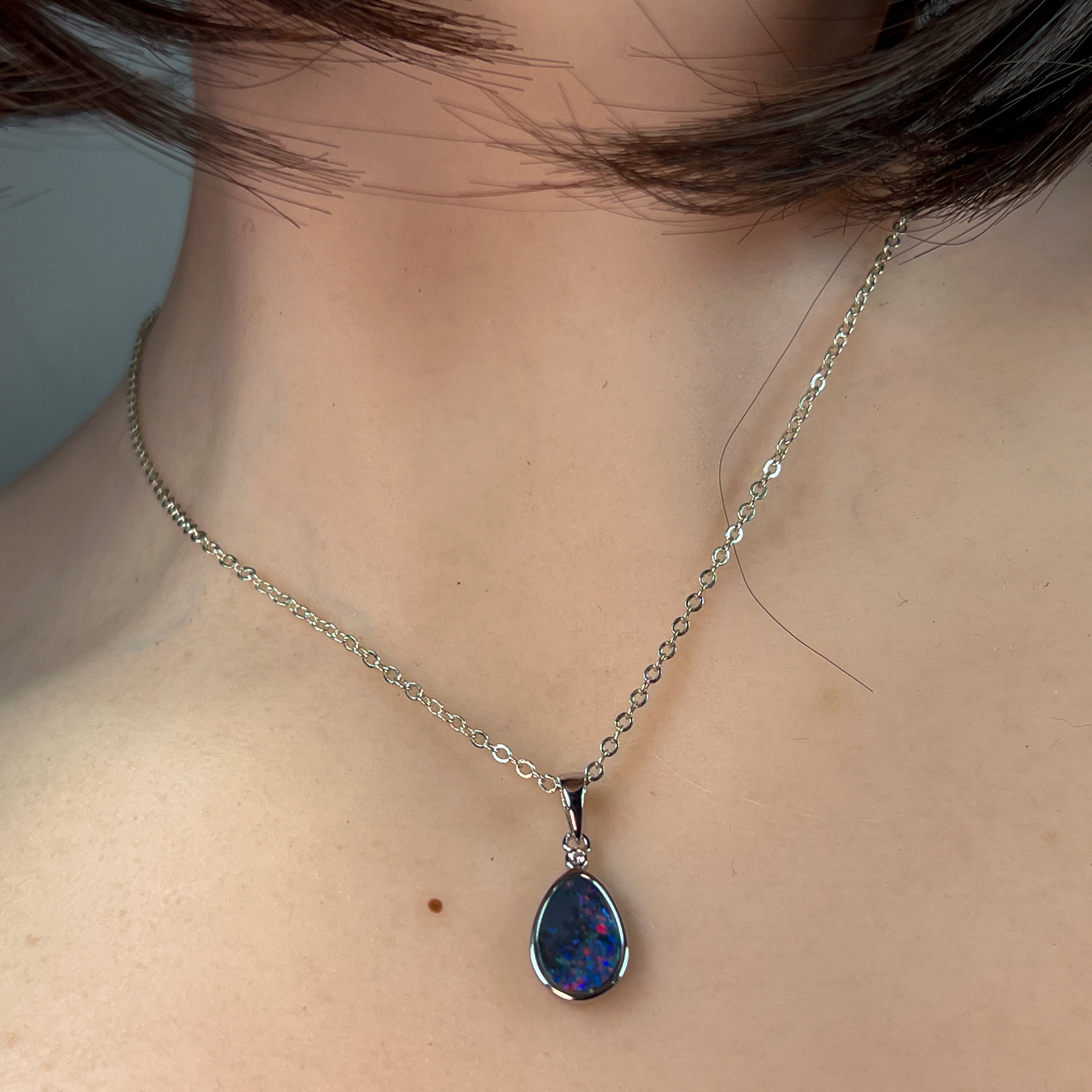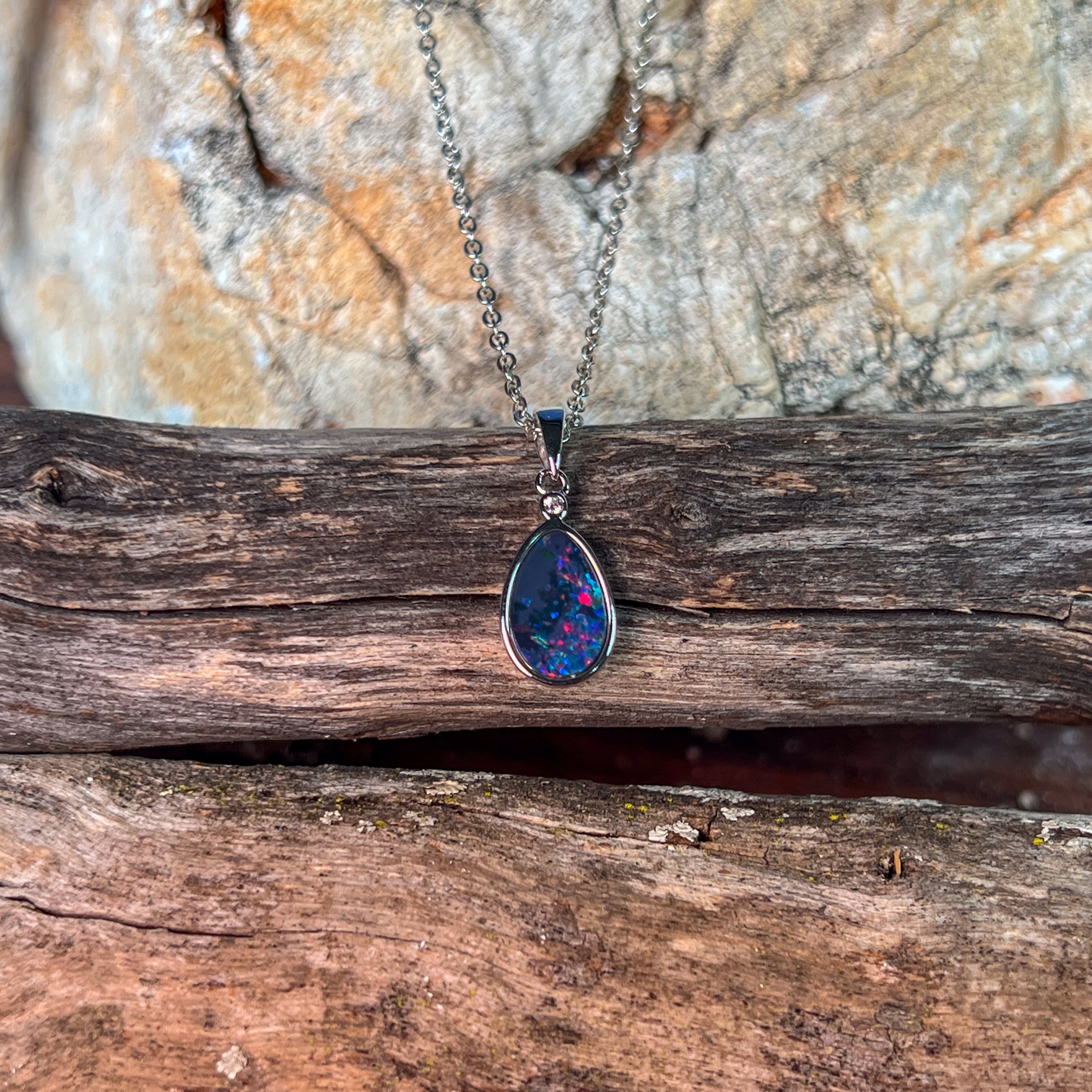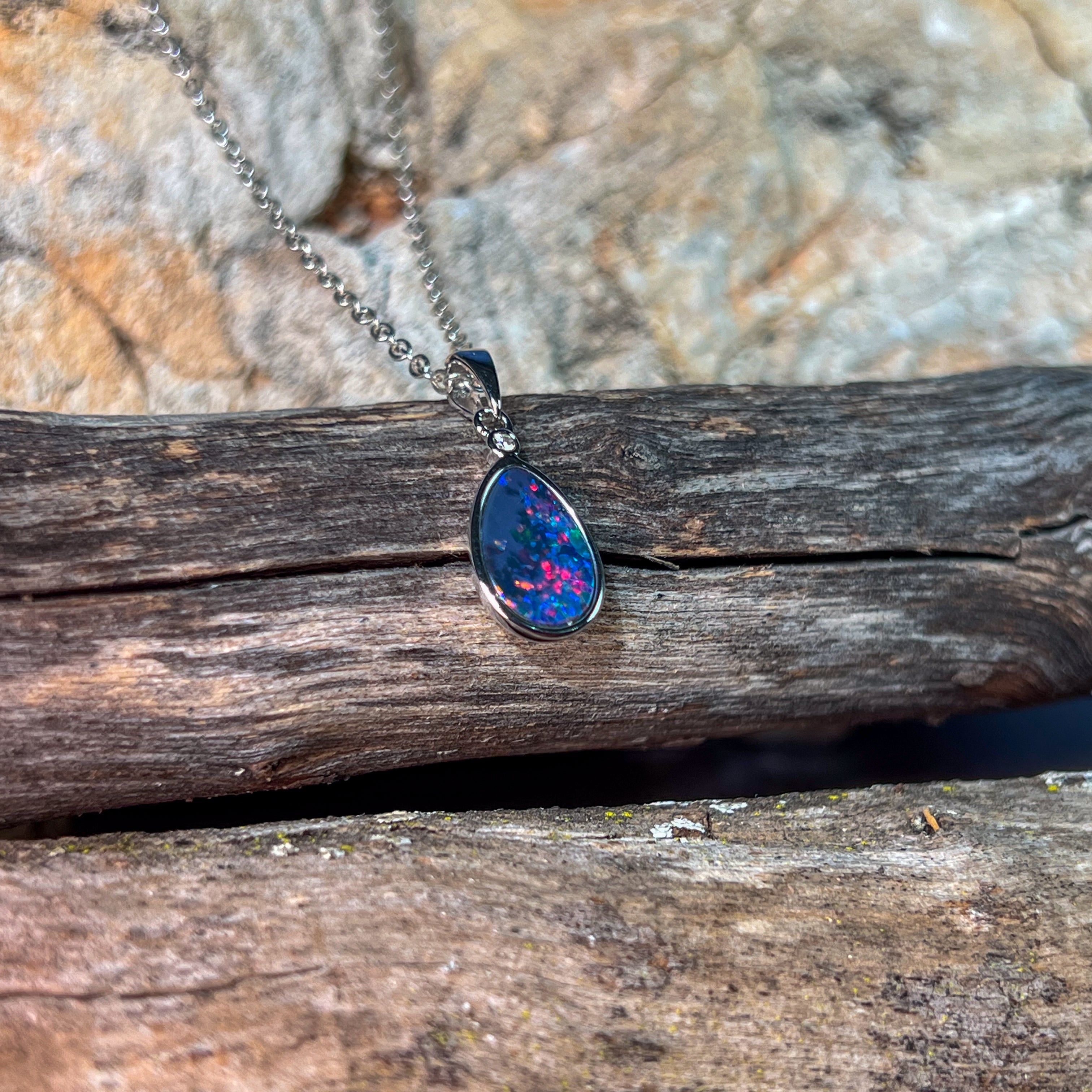 Sterling Silver Pear shape 12x9mm Opal doublet pendant