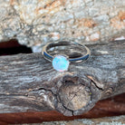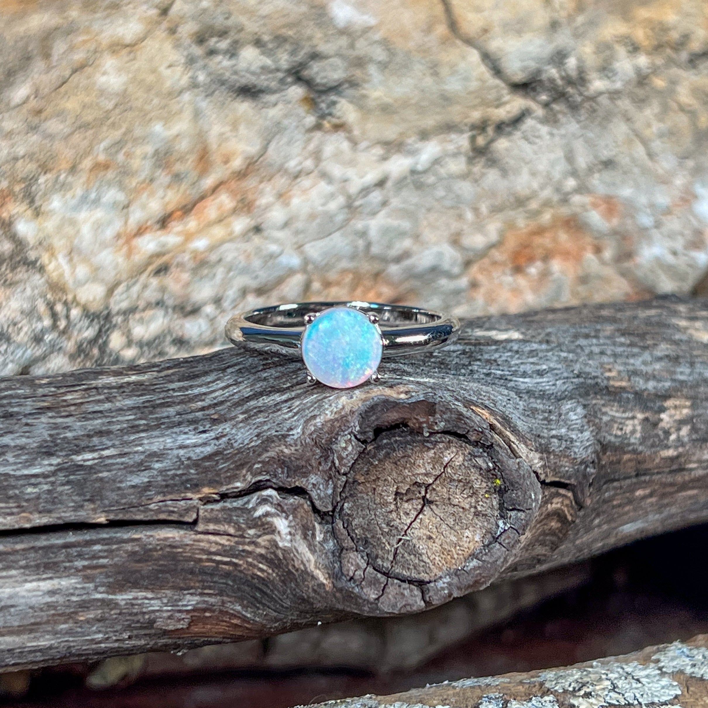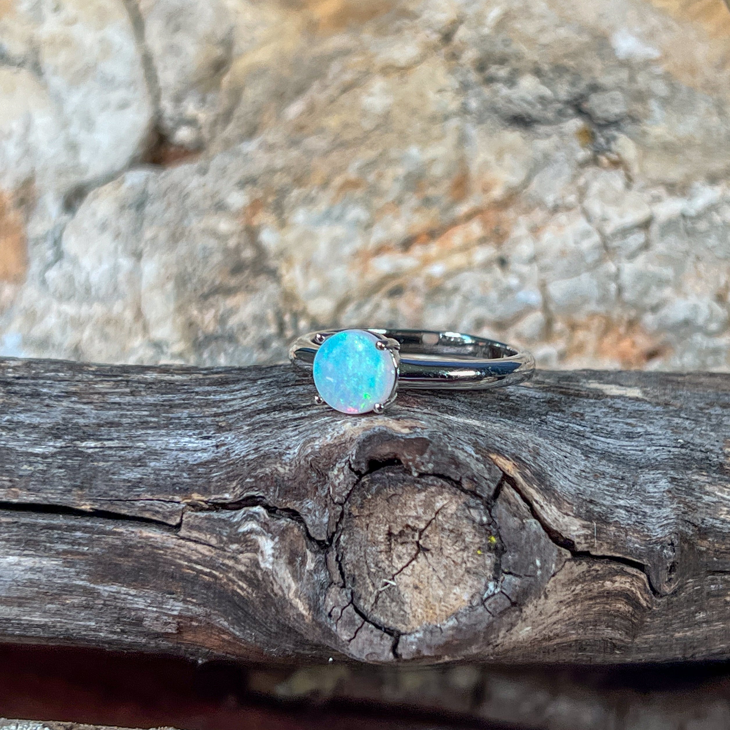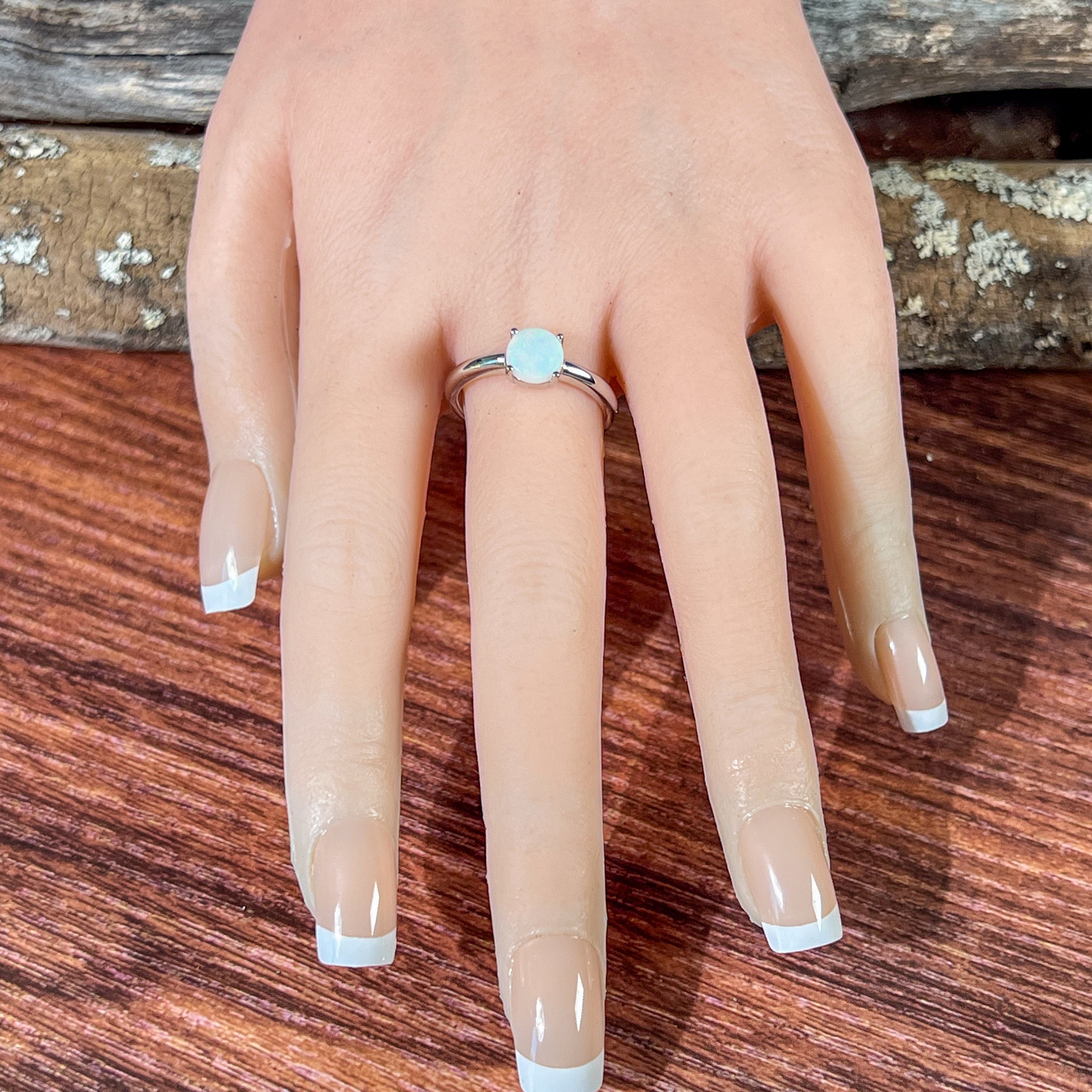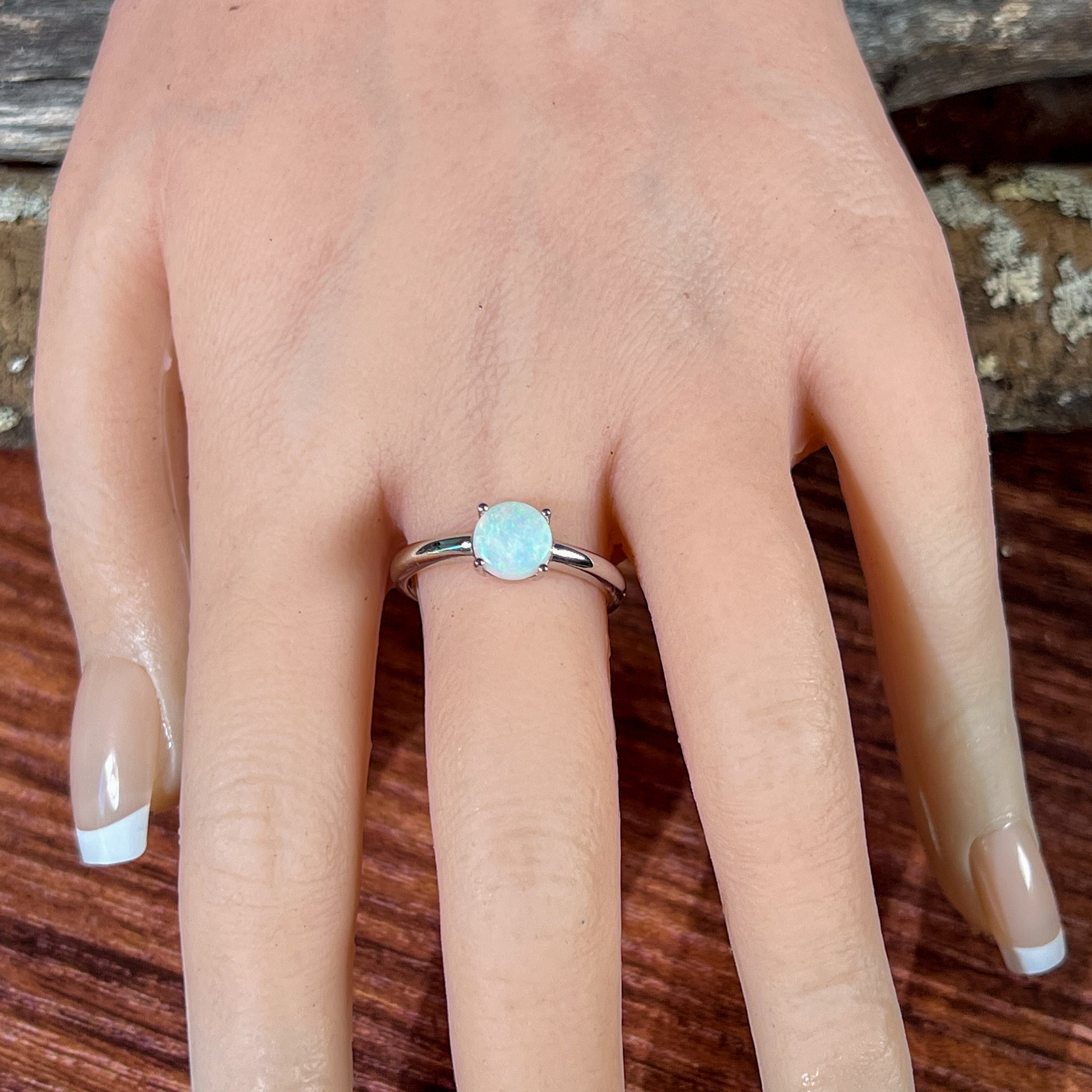 Sterling Silver solitaire White Opal 7mm Round claw set ring