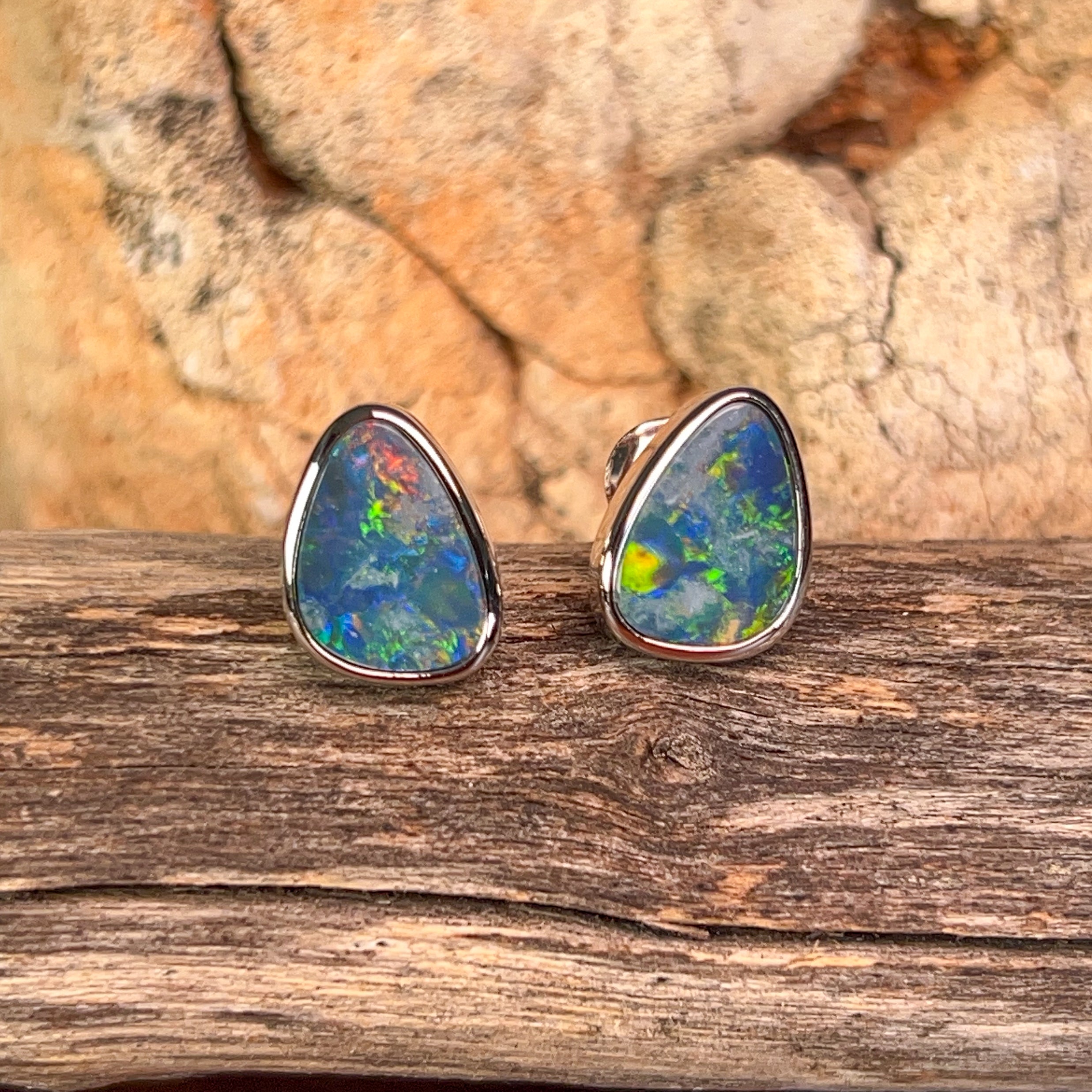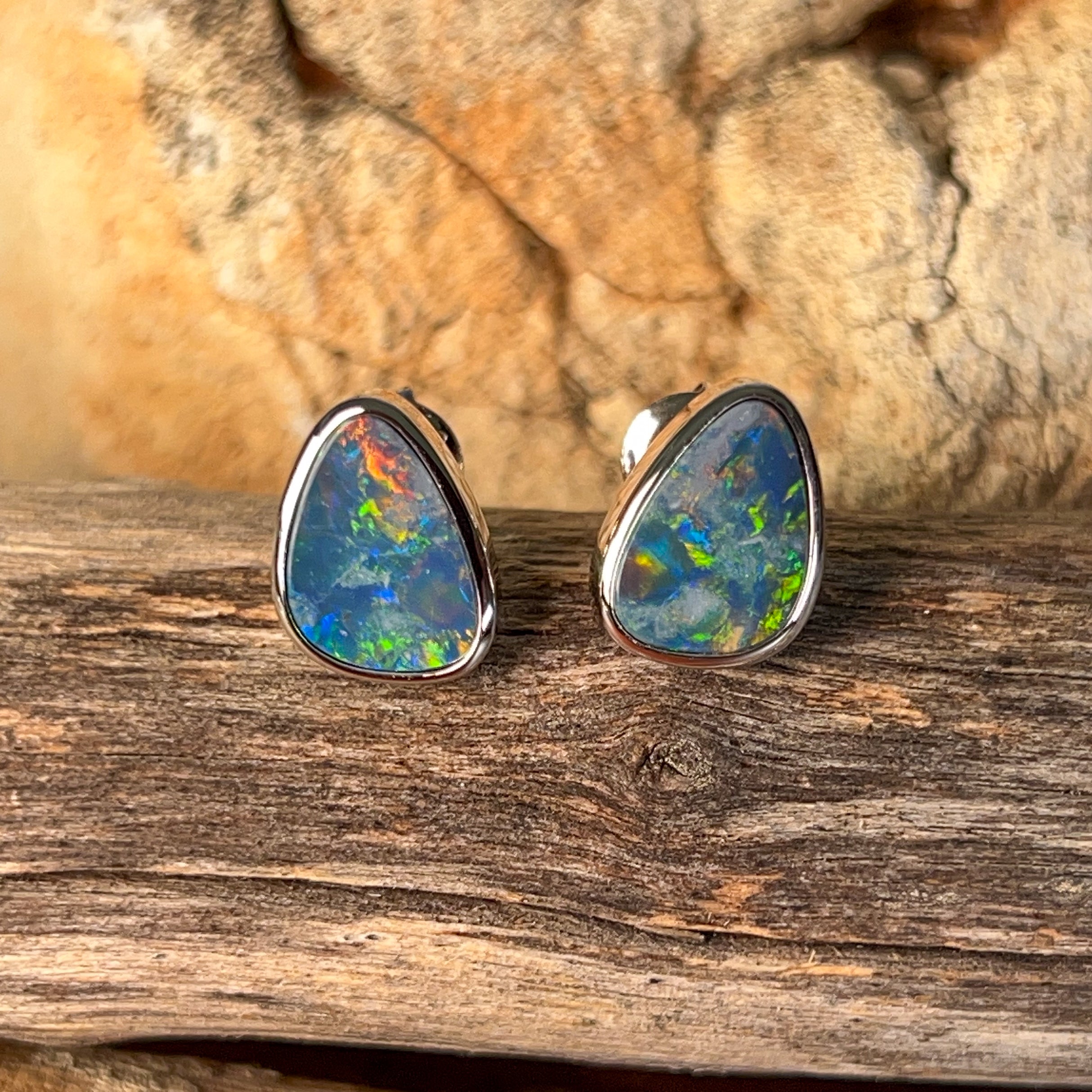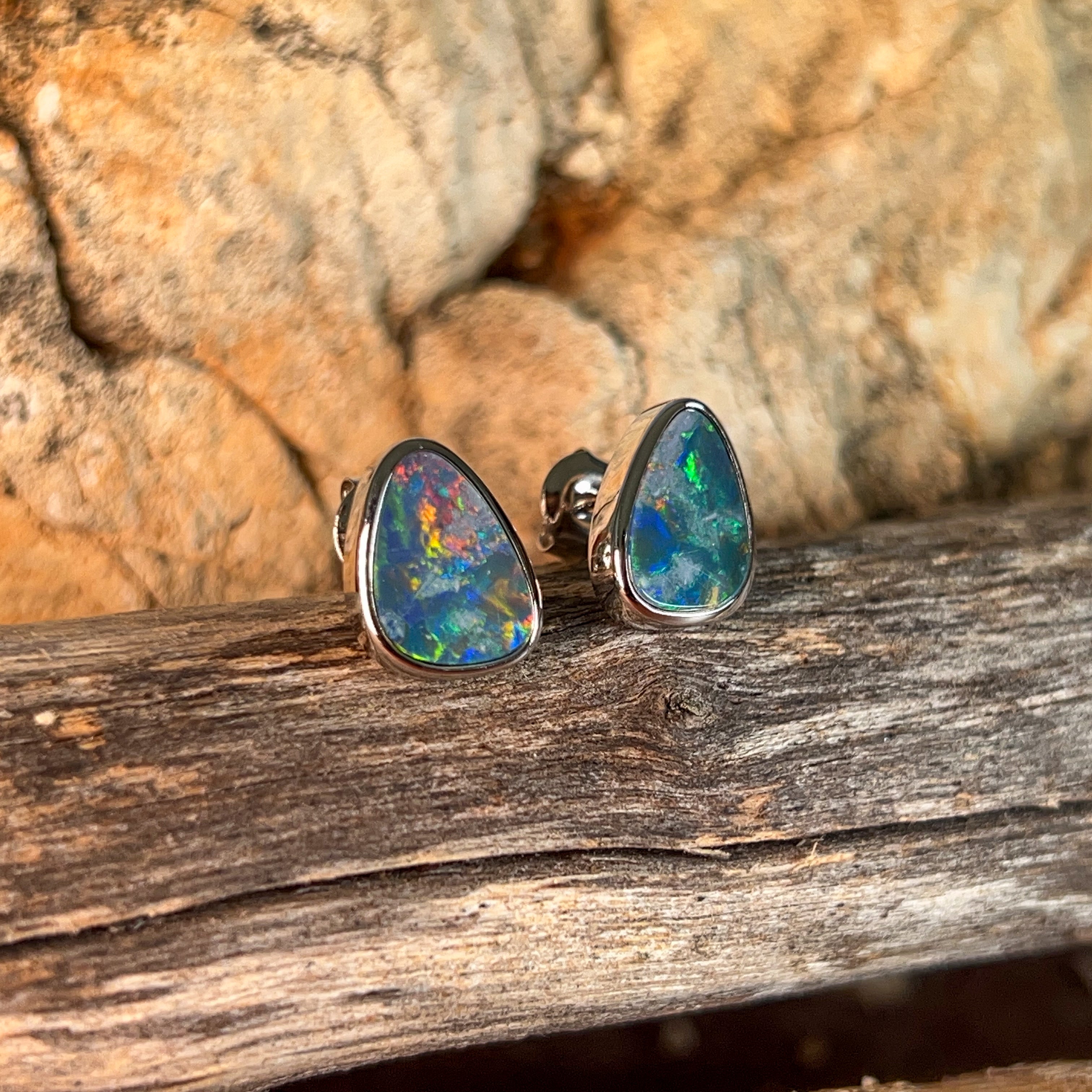 Capture the mesmerizing dance of light with these stunning sterling silver triangle opal doublet studs. Each piece showcases a brilliant 3.58ct opal that bursts with vibrant colour flashes—those magical rainbow hues that make opals truly unforgettable. The sleek triangular design offers modern sophistication, while the secure doublet construction ensures durability for everyday wear. Perfect for adding a touch of natural elegance to any look, these studs let your personality shine as brightly as the gemstones themselves.