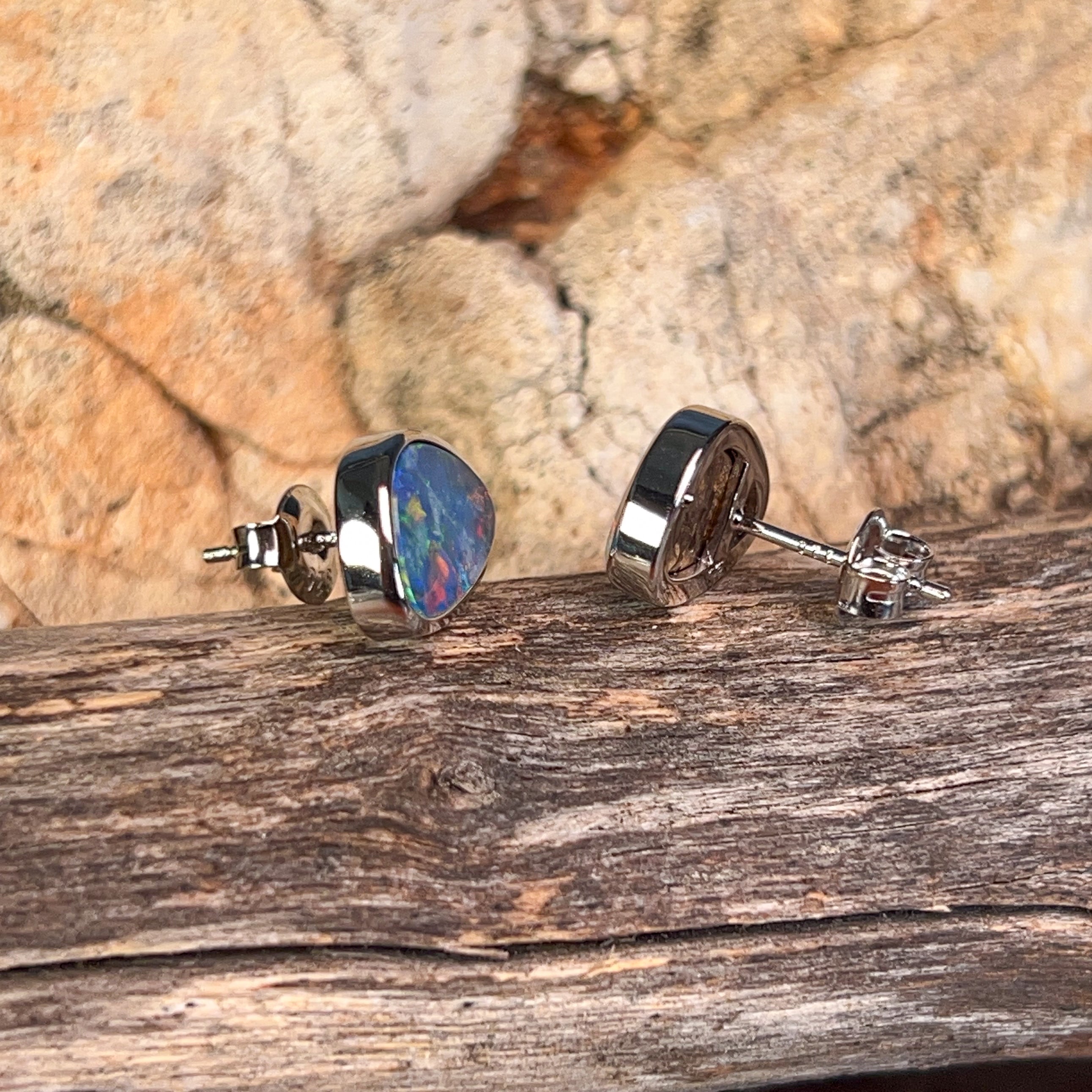 Sterling Silver triangle shape Opal doublet 3.58ct studs