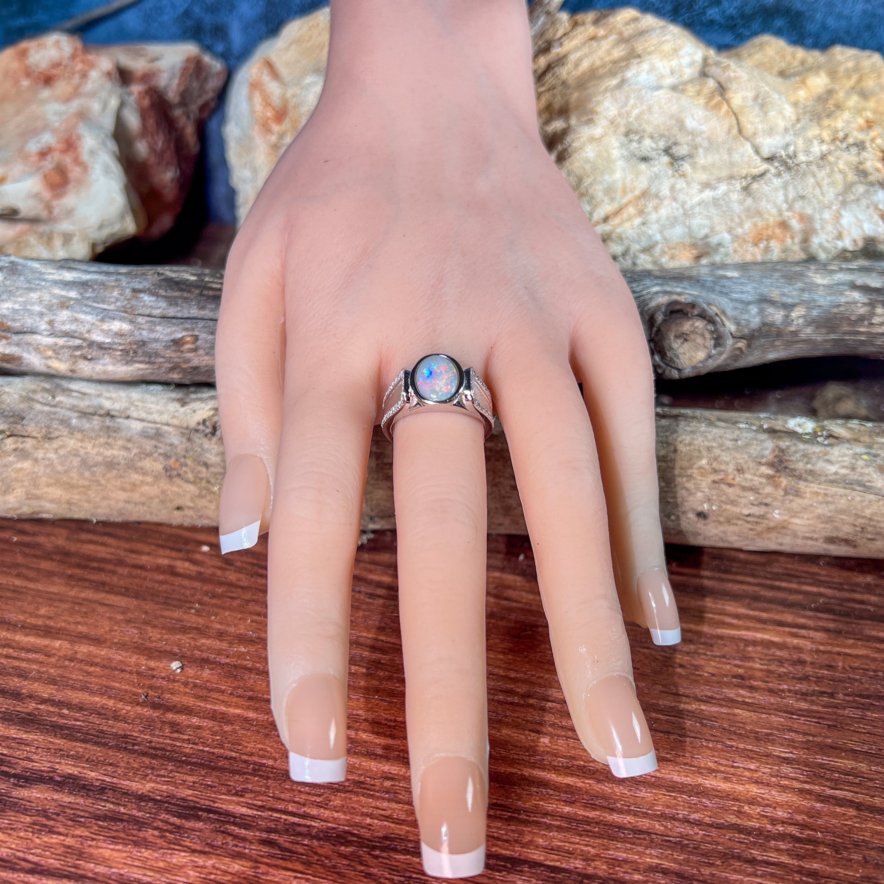 Elevate your style with this sterling silver ring featuring a luminous 10x8mm white opal. The matte finish adds a modern, sophisticated touch, making it perfect for both everyday wear and special occasions. Experience subtle elegance and timeless beauty in one exquisite piece.